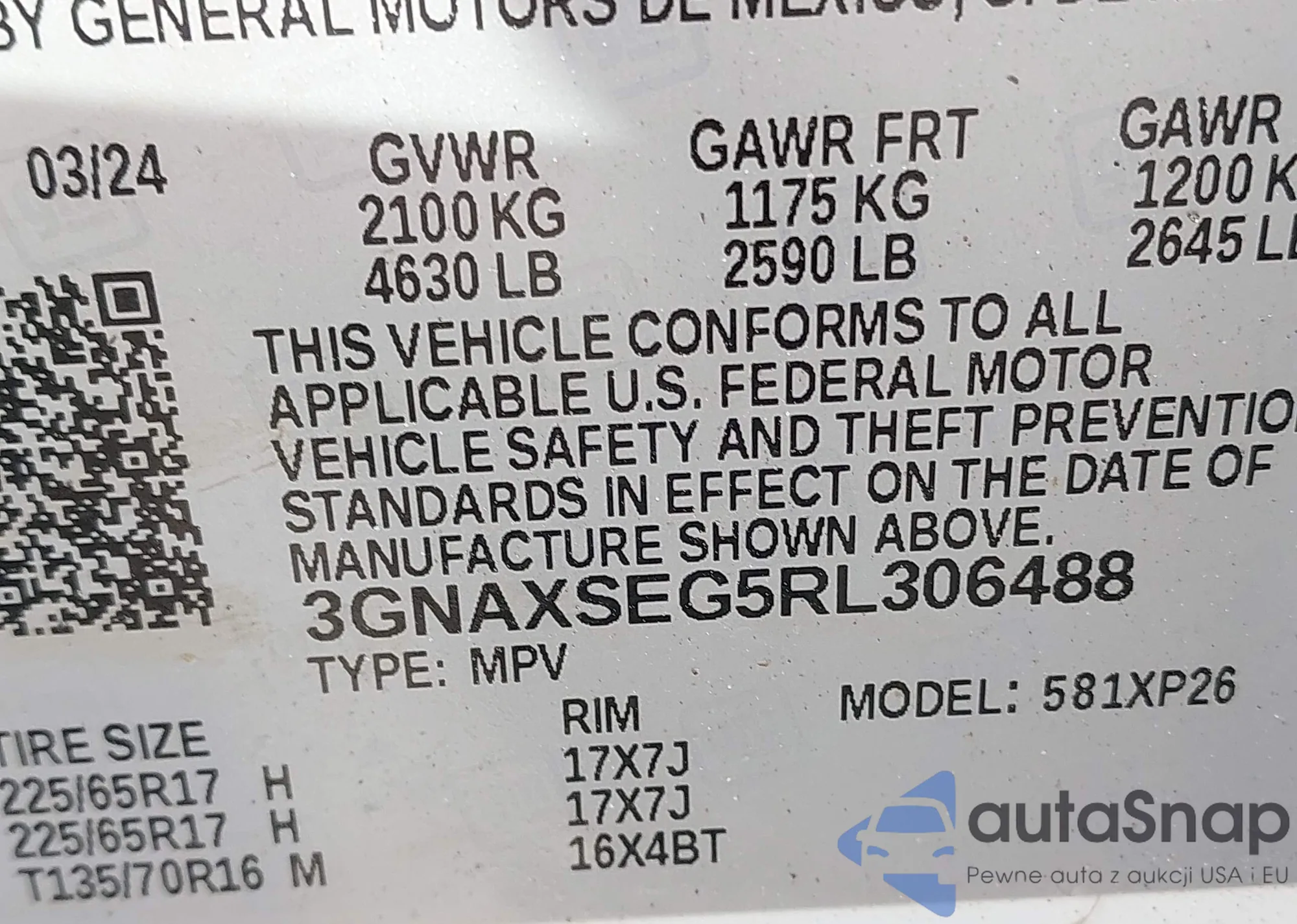 LOT: 42589940 VIN: 3GNAXSEG5RL306488