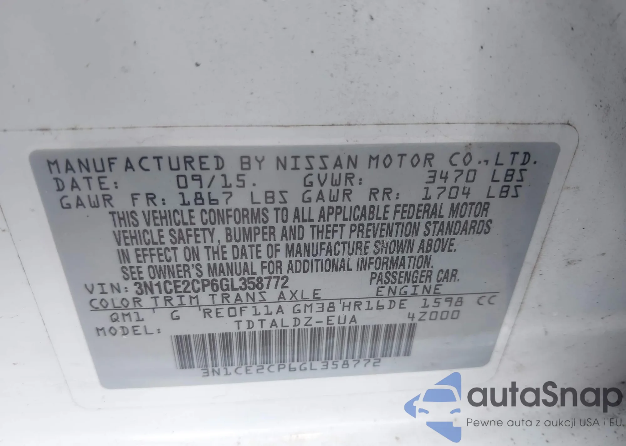 • VIN 3N1CE2CP6GL358772