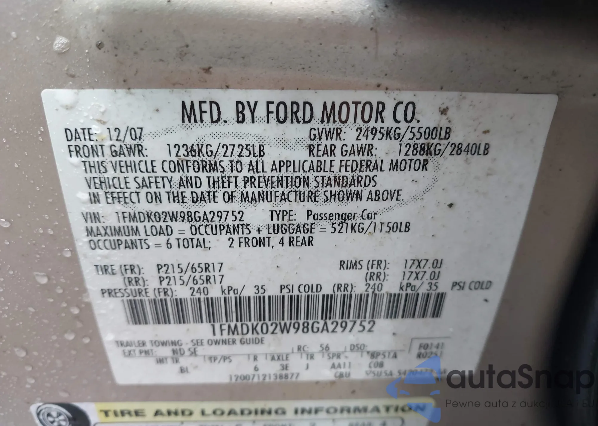 • VIN 1FMCU0G62MUA14035