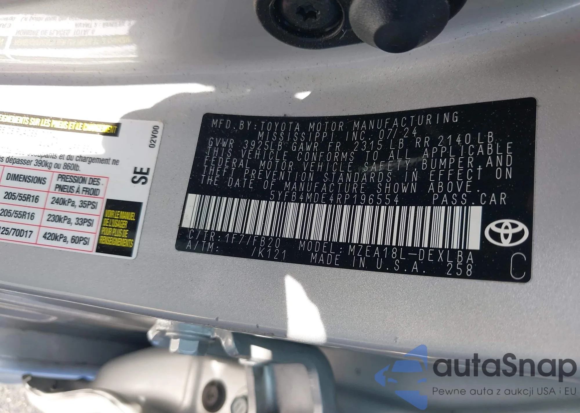 • VIN 5YFB4MDE4RP196554