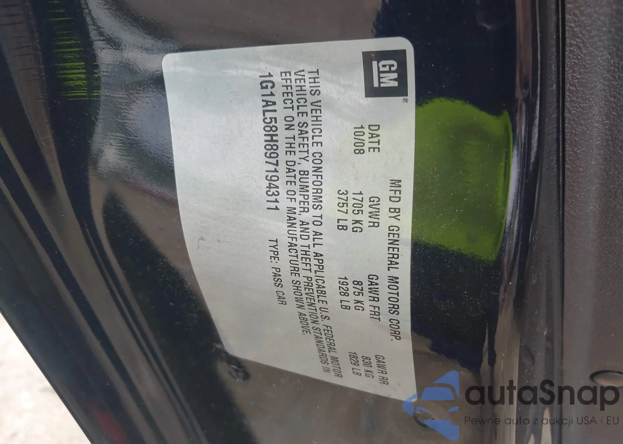 • VIN 1G1AL58H897194311