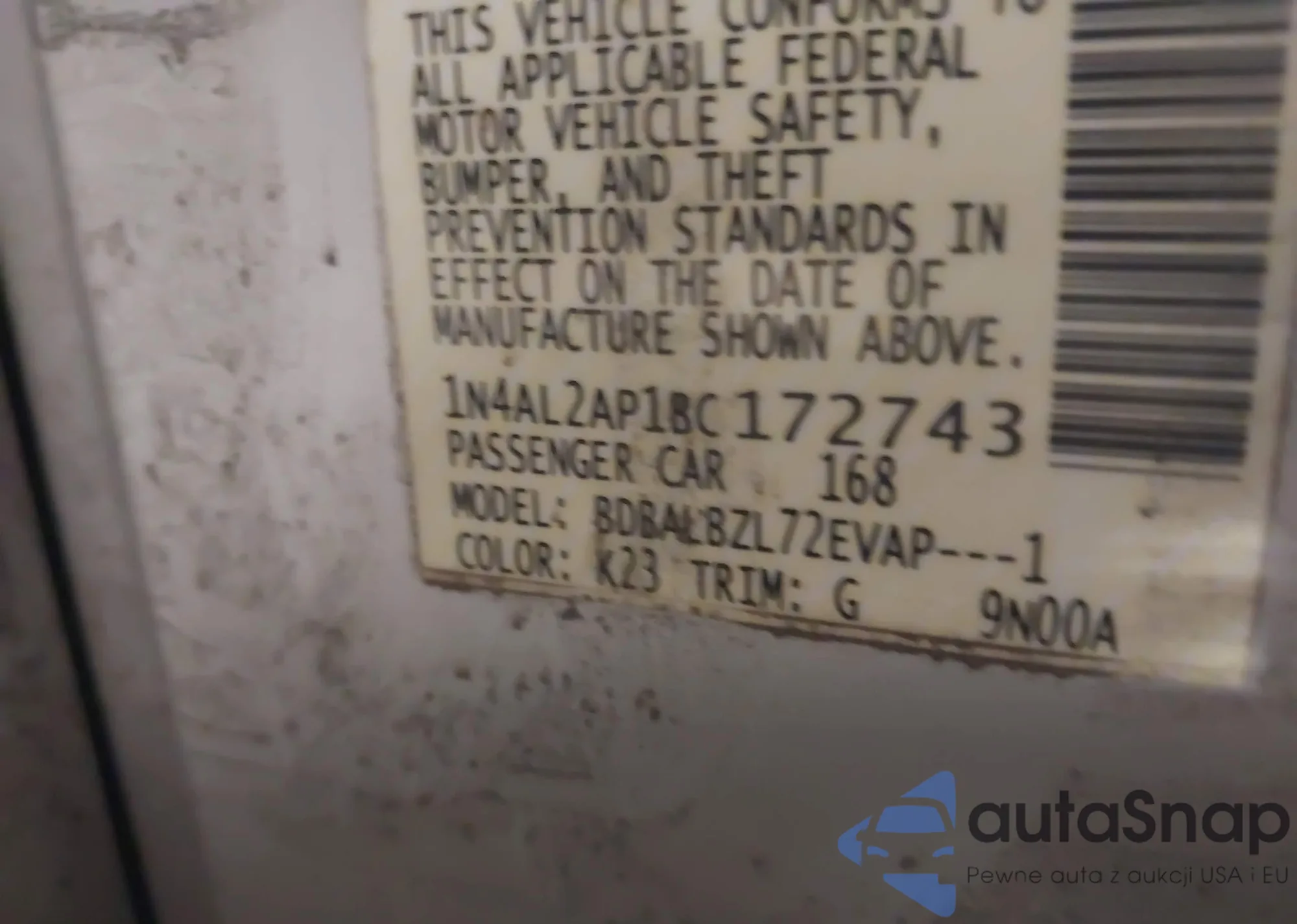 • VIN 1N4AA6APXHC451761