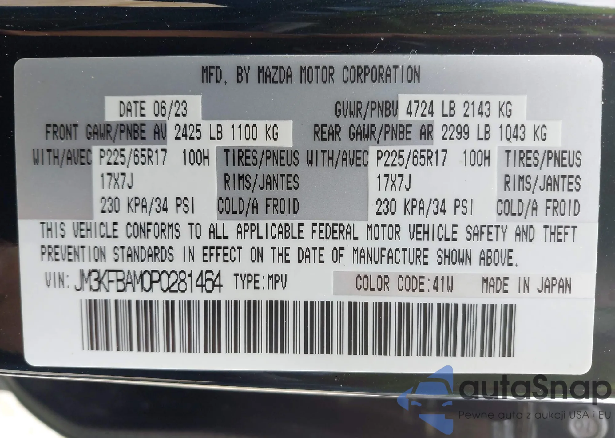 LOT: 42584532 VIN: WBAVC93547KX58993