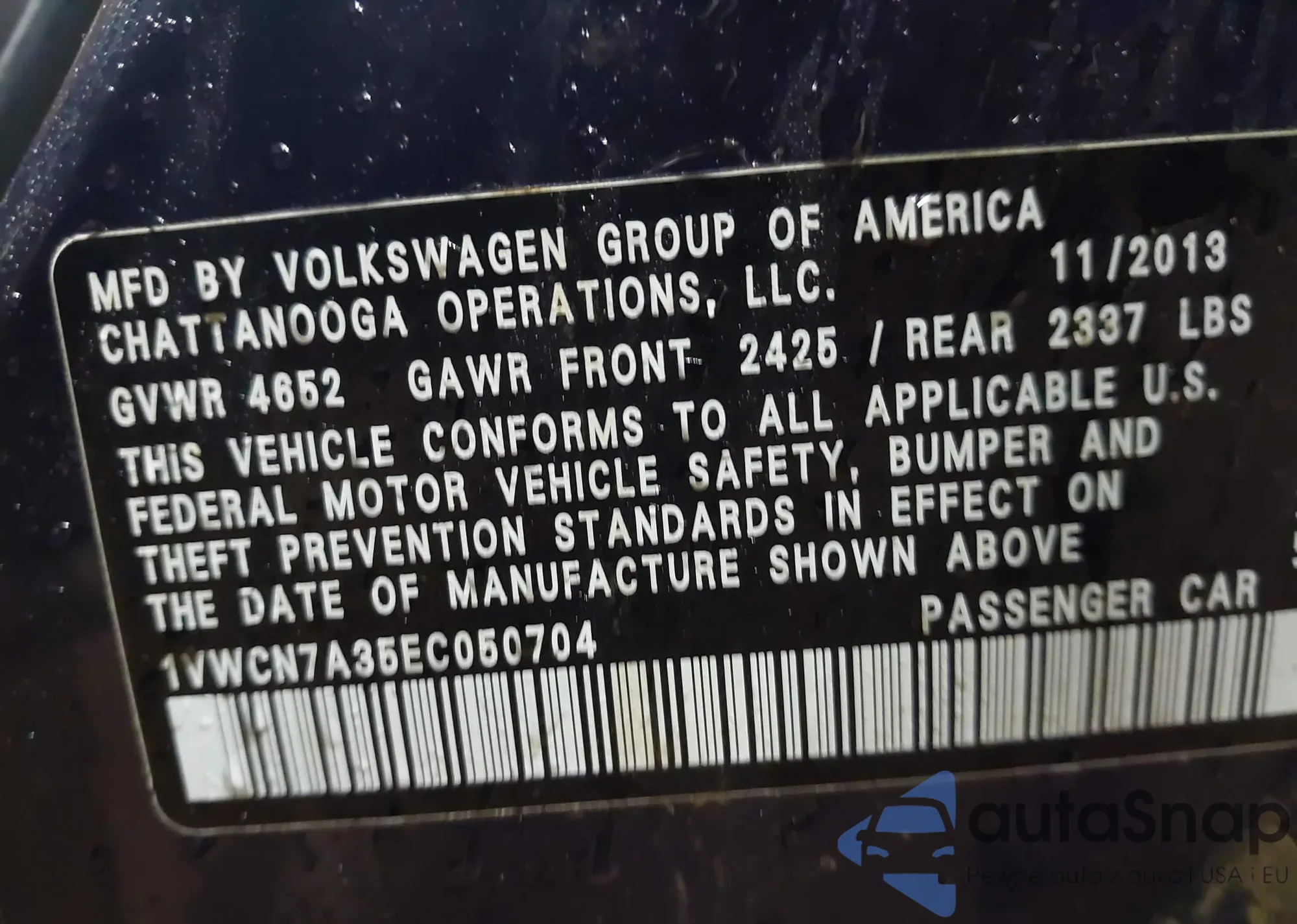 • VIN 1VWCN7A35EC050704
