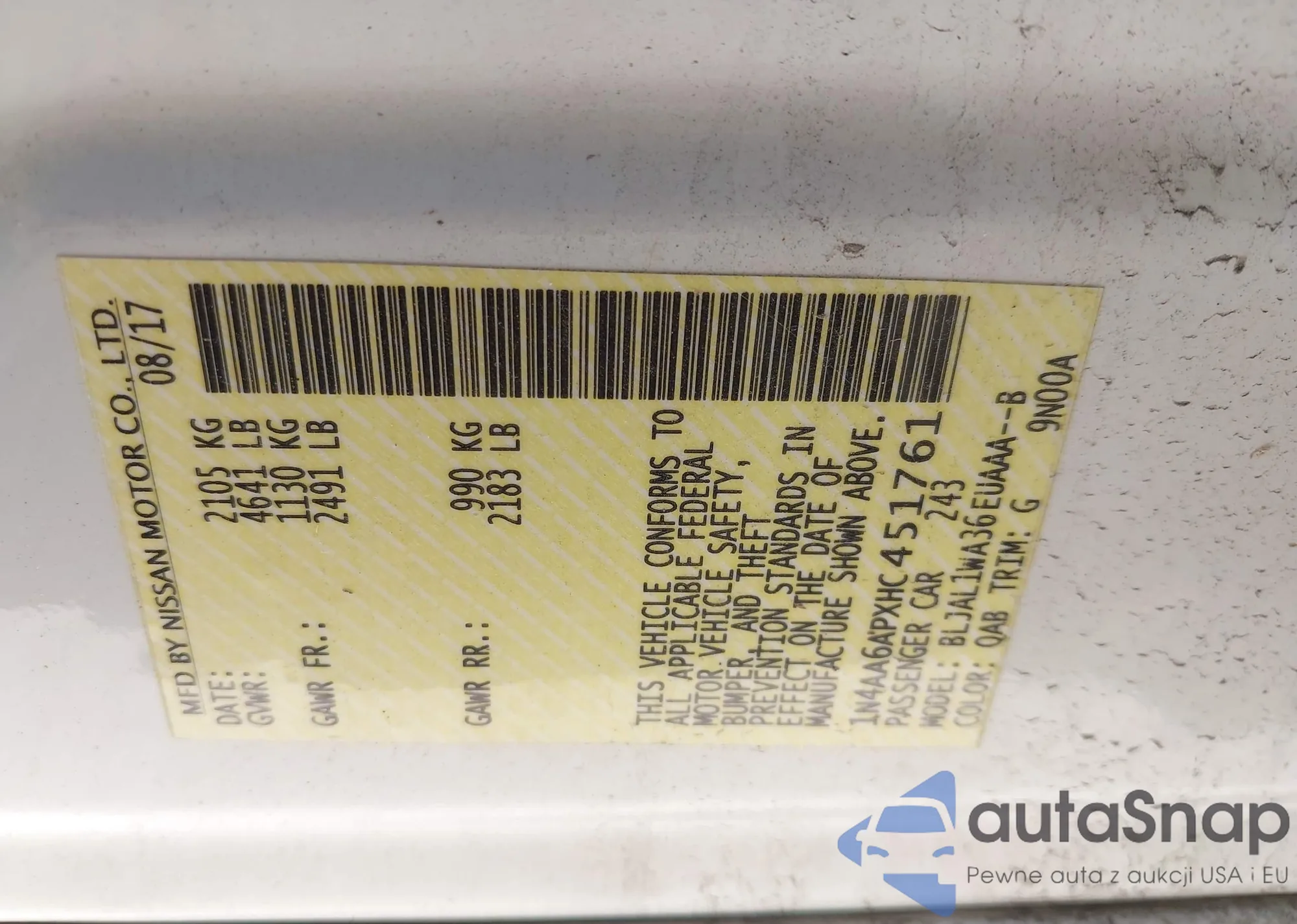 LOT: 42546250 VIN: 1N4AA6APXHC451761
