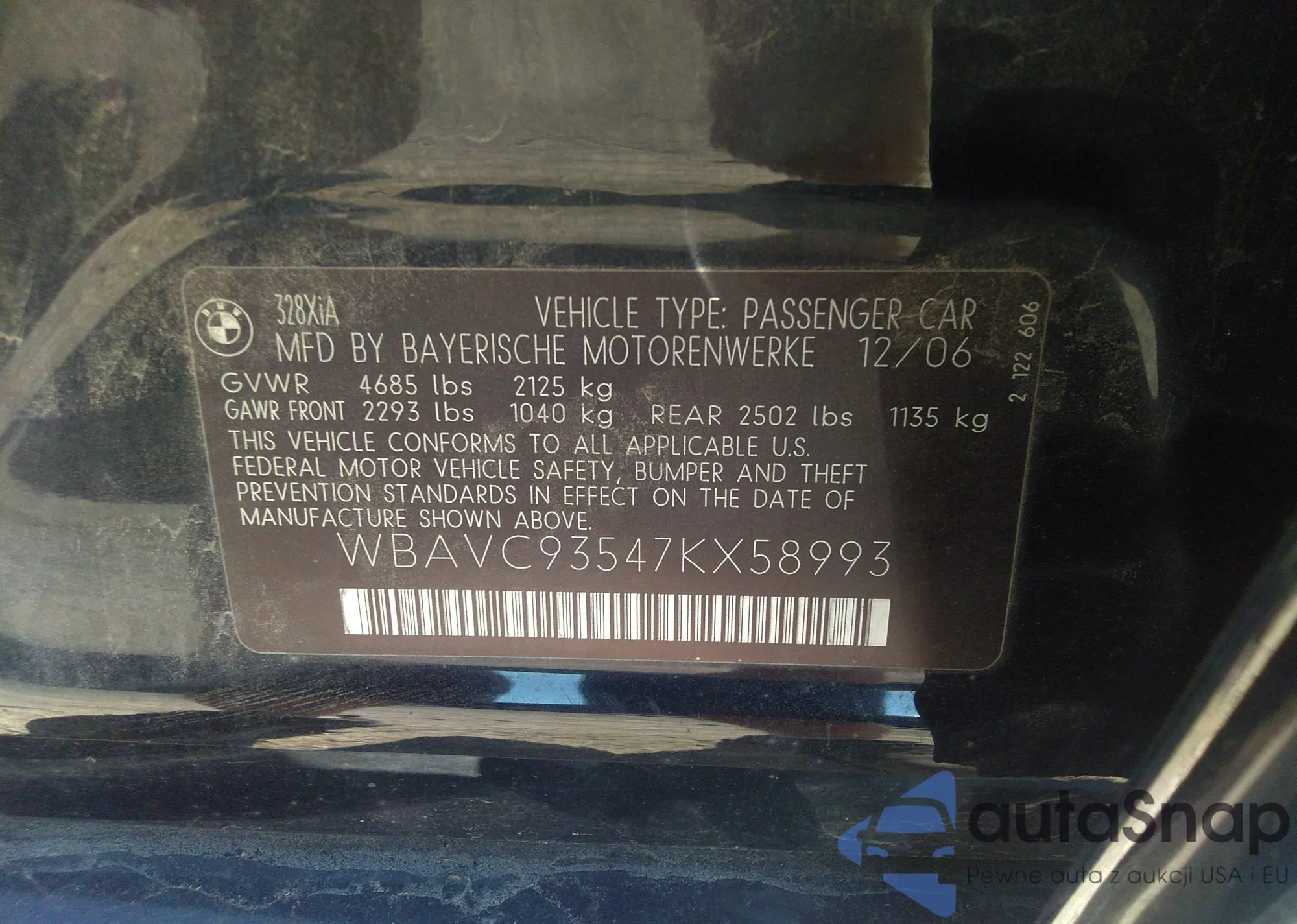 • VIN WBAVC93547KX58993