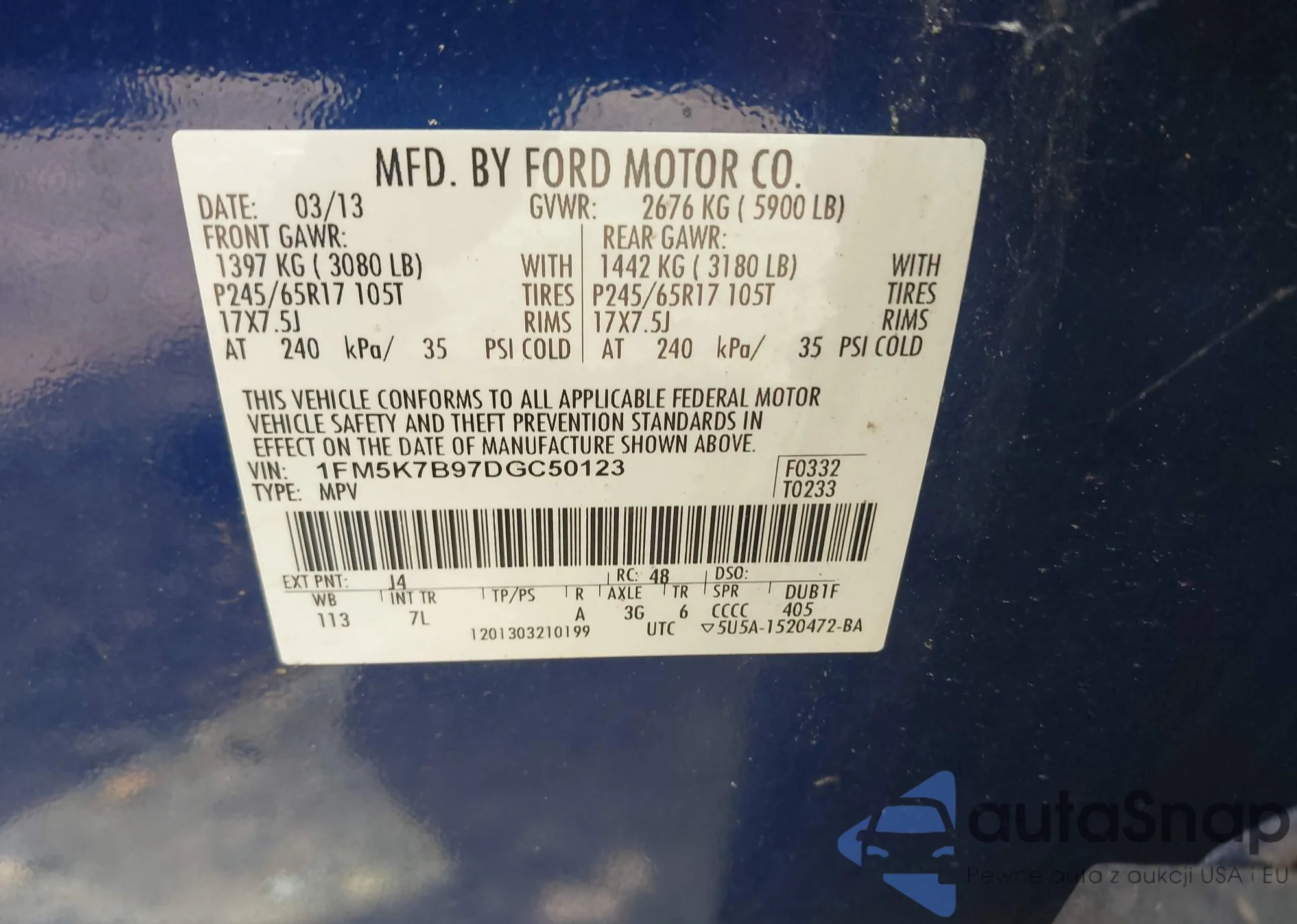 LOT: 42526808 VIN: 5TFJX4GNXDX020570