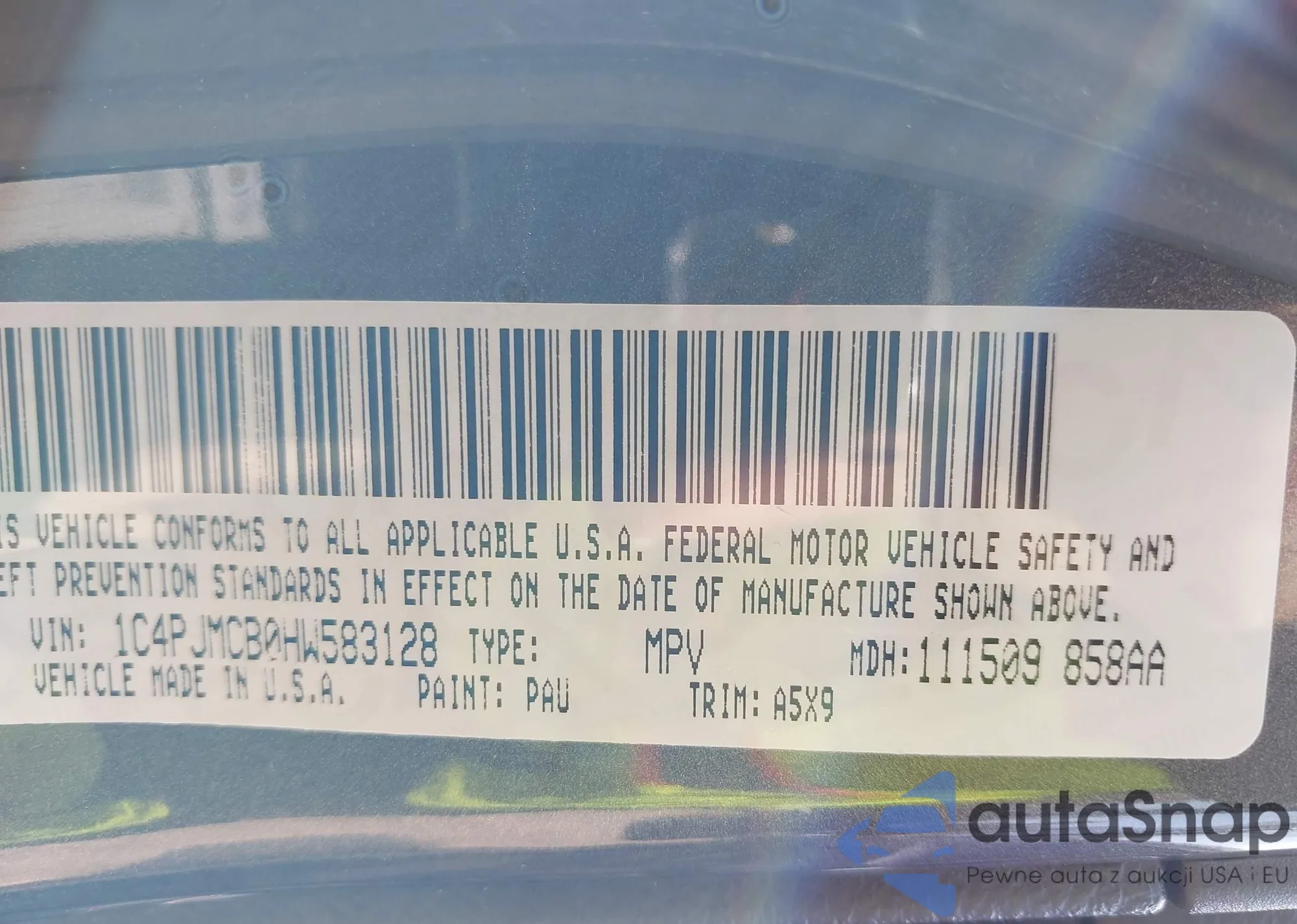 • VIN 1C4PJMCB0HW583128
