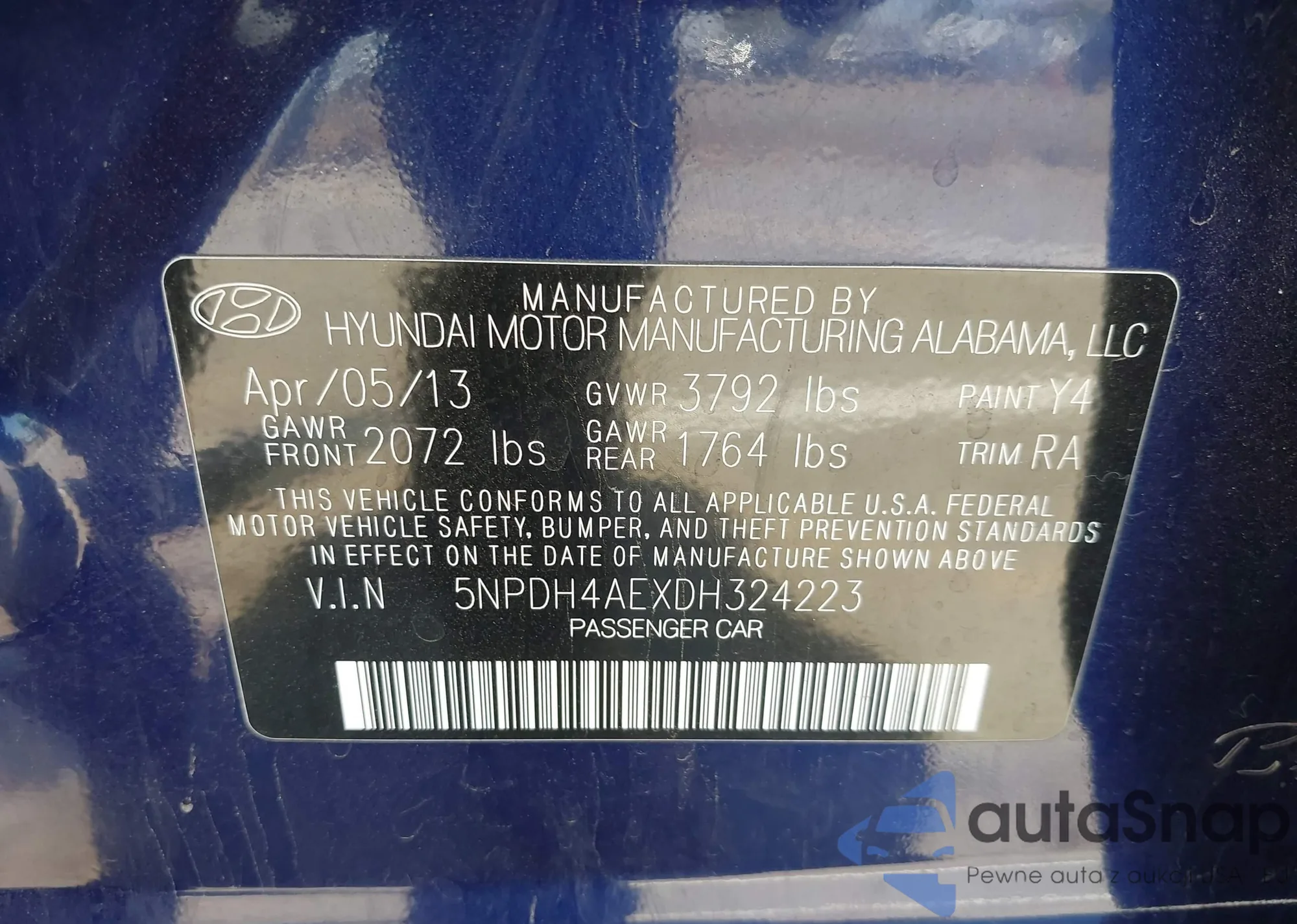 LOT: 42467350 VIN: 5NPDH4AEXDH324223
