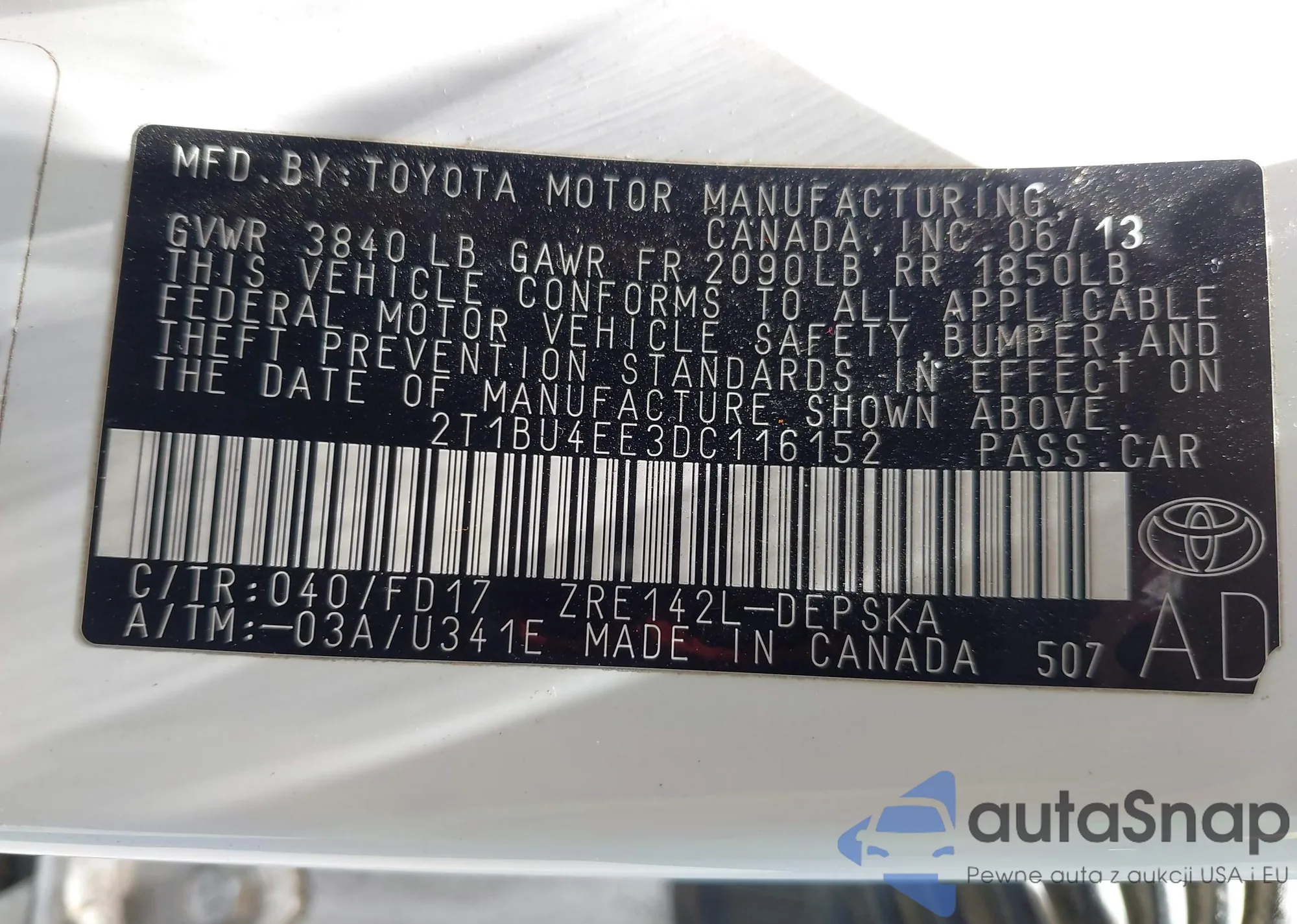 • VIN 2T1BU4EE3DC116152