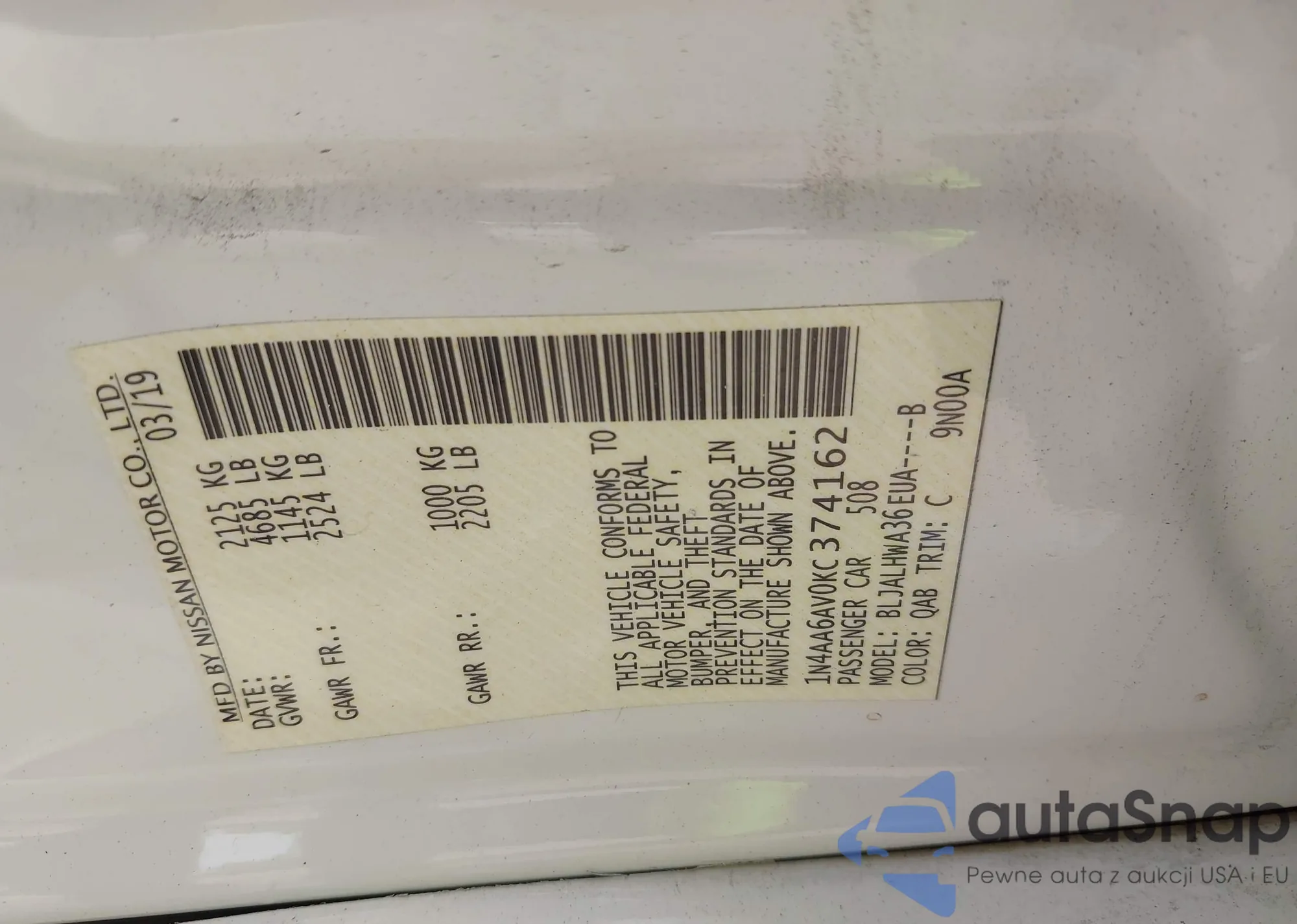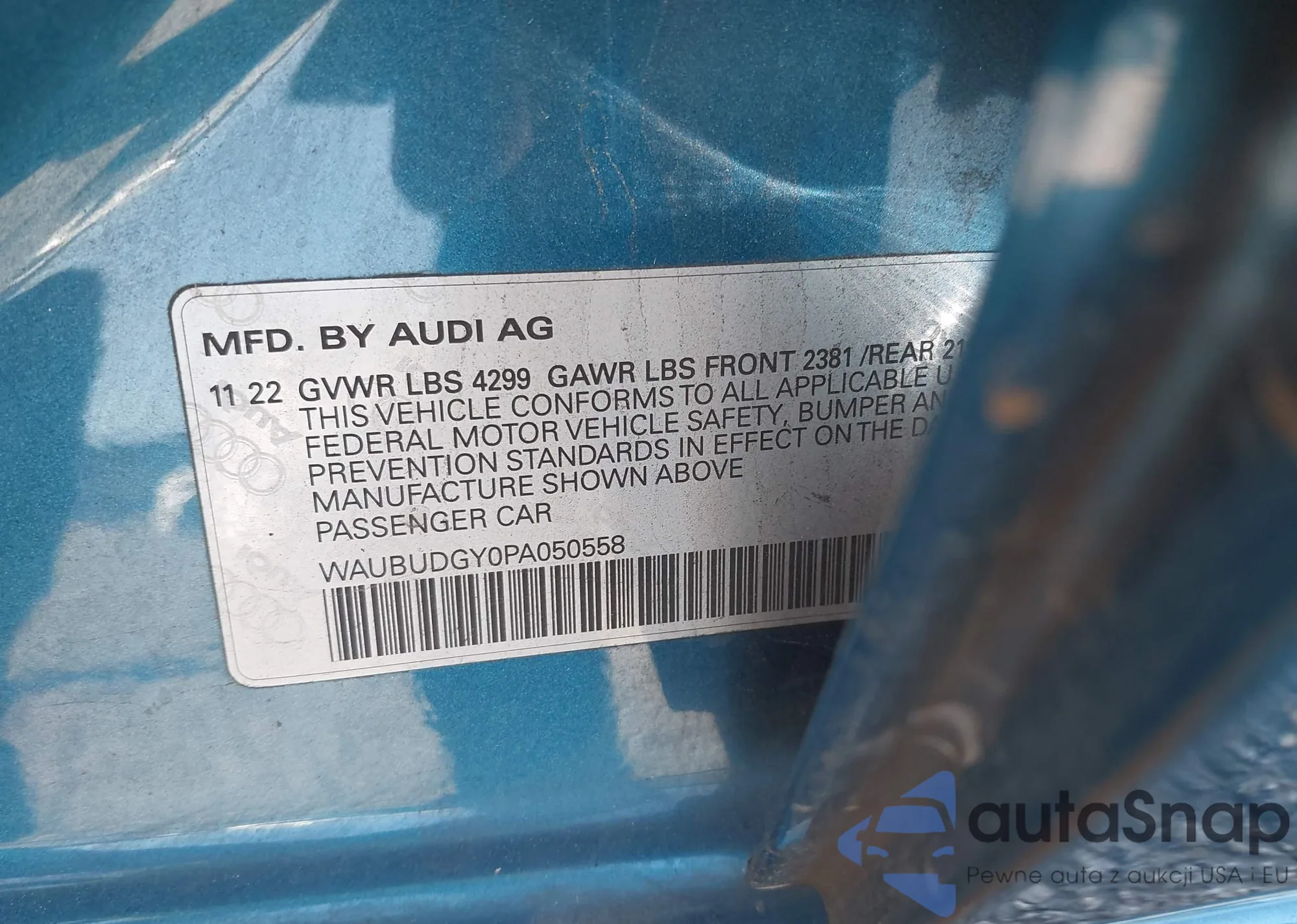 LOT: 42257438 VIN: WAUBUDGY0PA050558