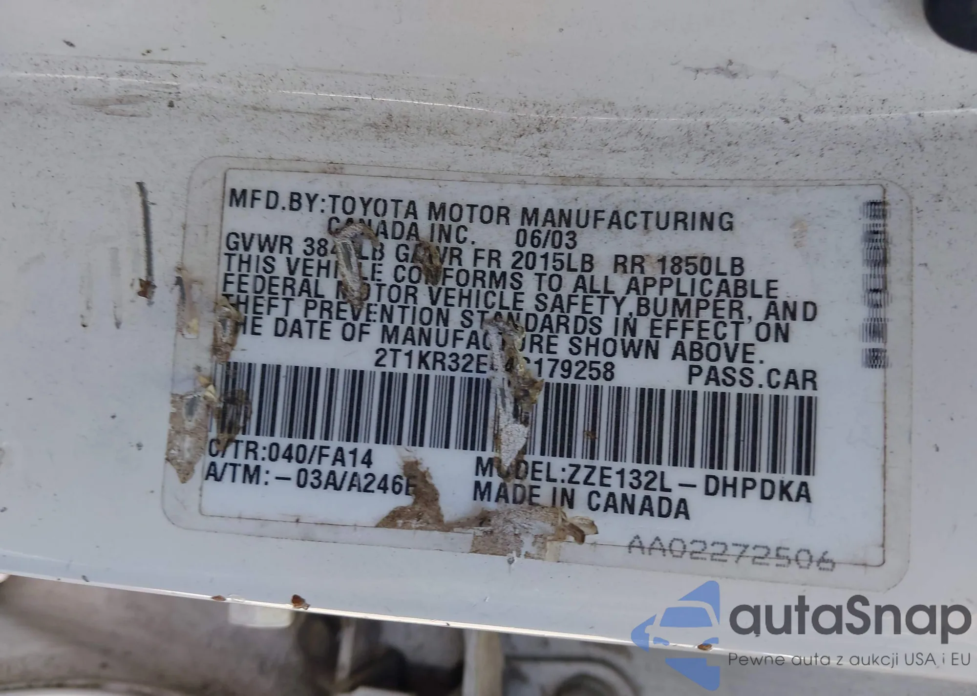 • VIN 2T1KR32E44C179258