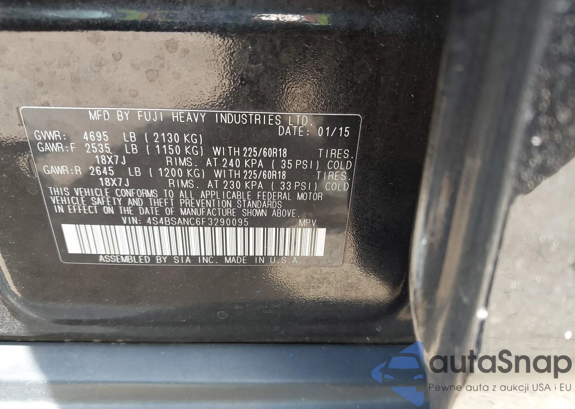 LOT: 42634714 VIN: 4S4BSANC6F3290095