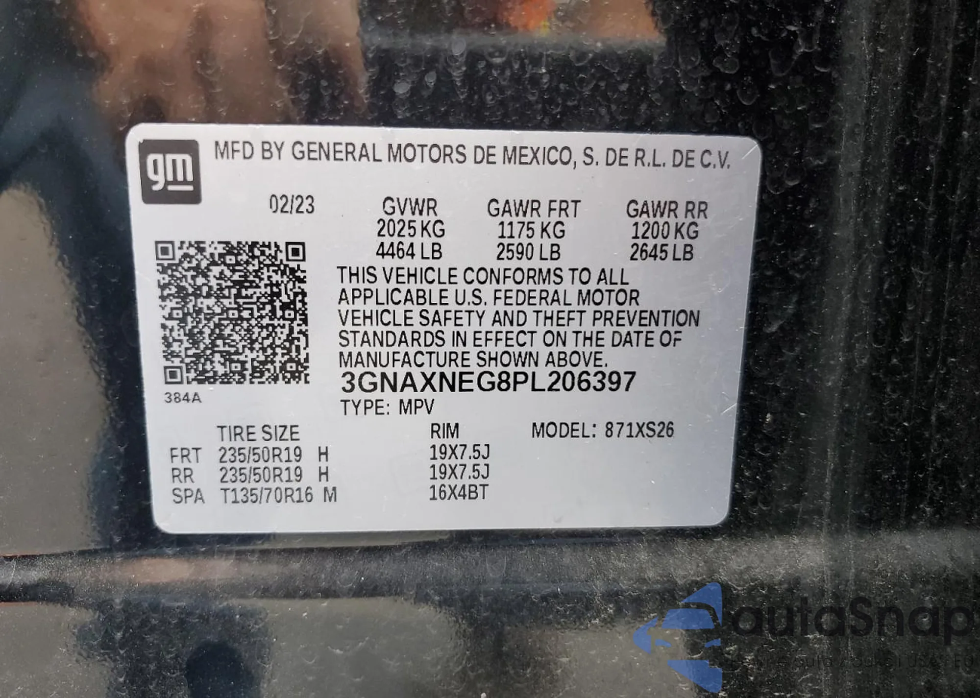 LOT: 60755685 VIN: 3GNAXNEG8PL206397