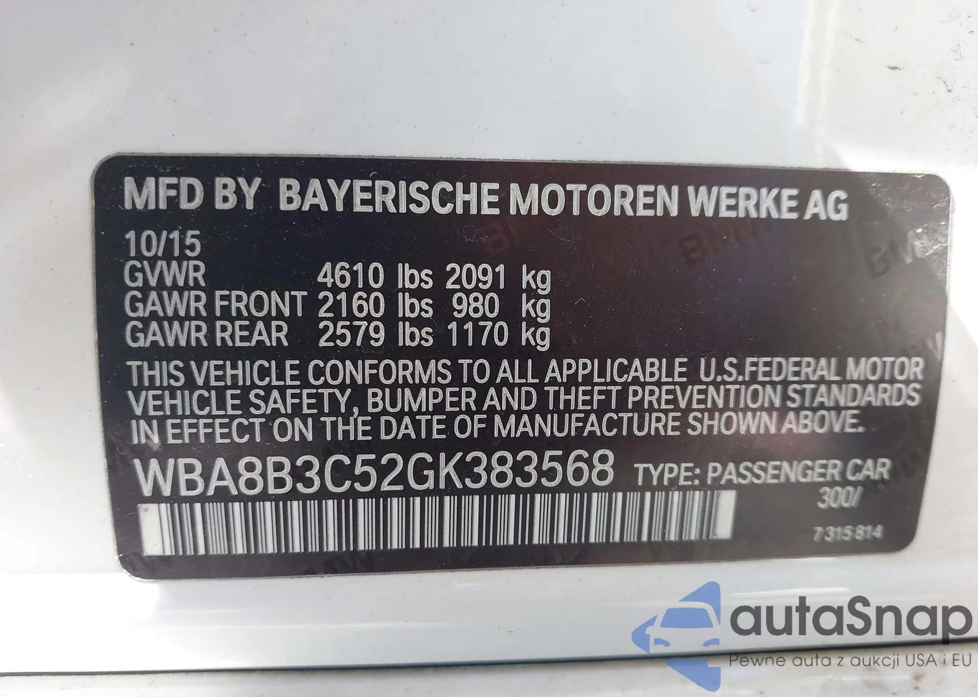 • VIN WBA8B3C52GK383568