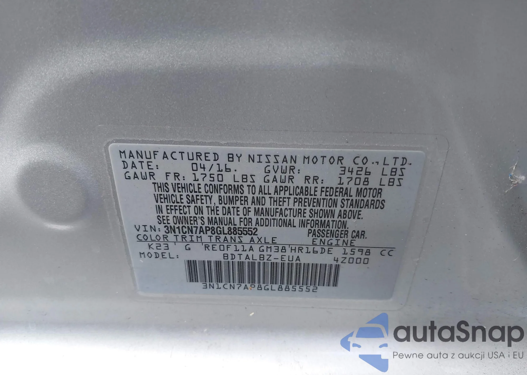 • VIN 3N1CN7AP8GL885552