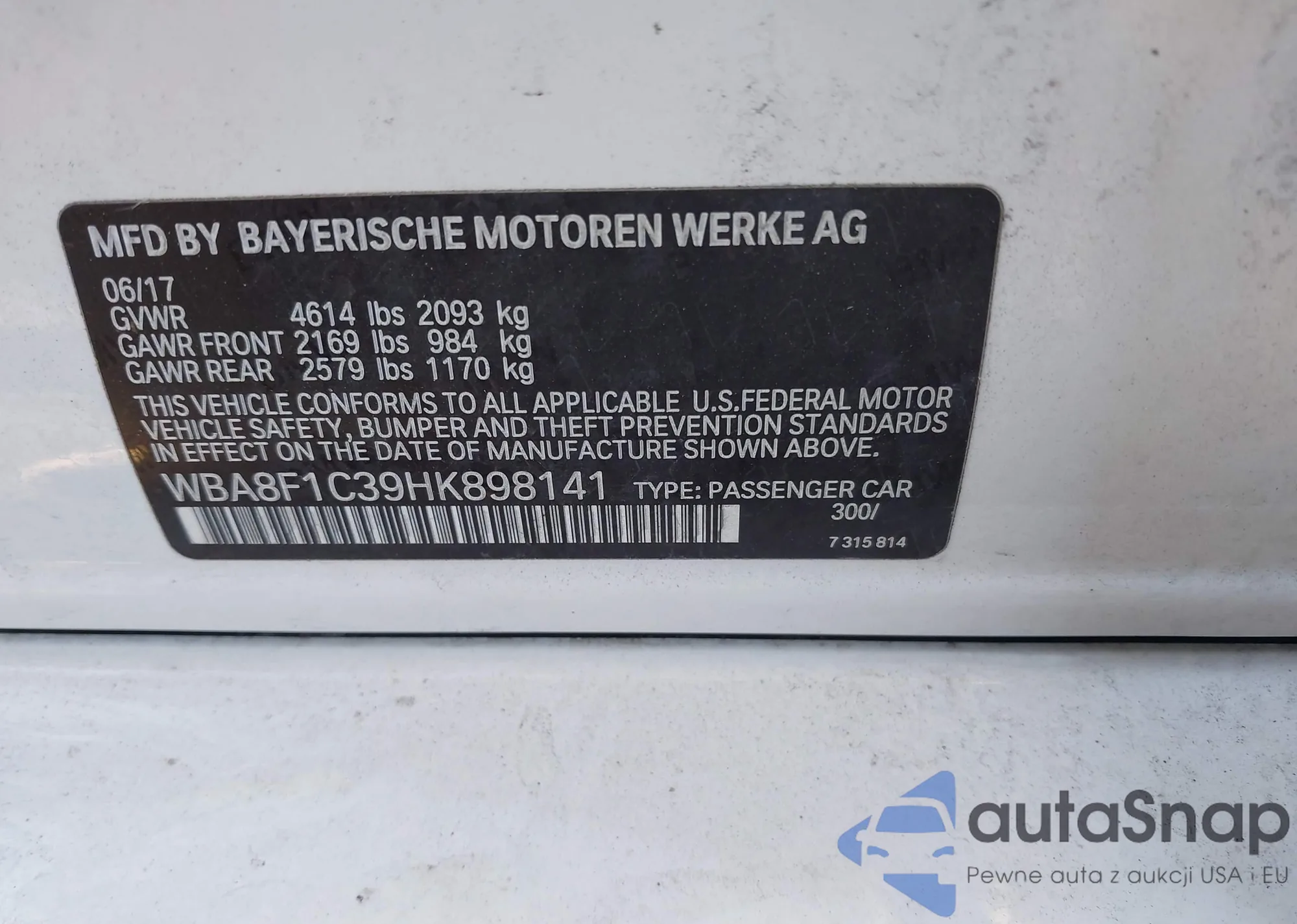 • VIN WBA8F1C39HK898141