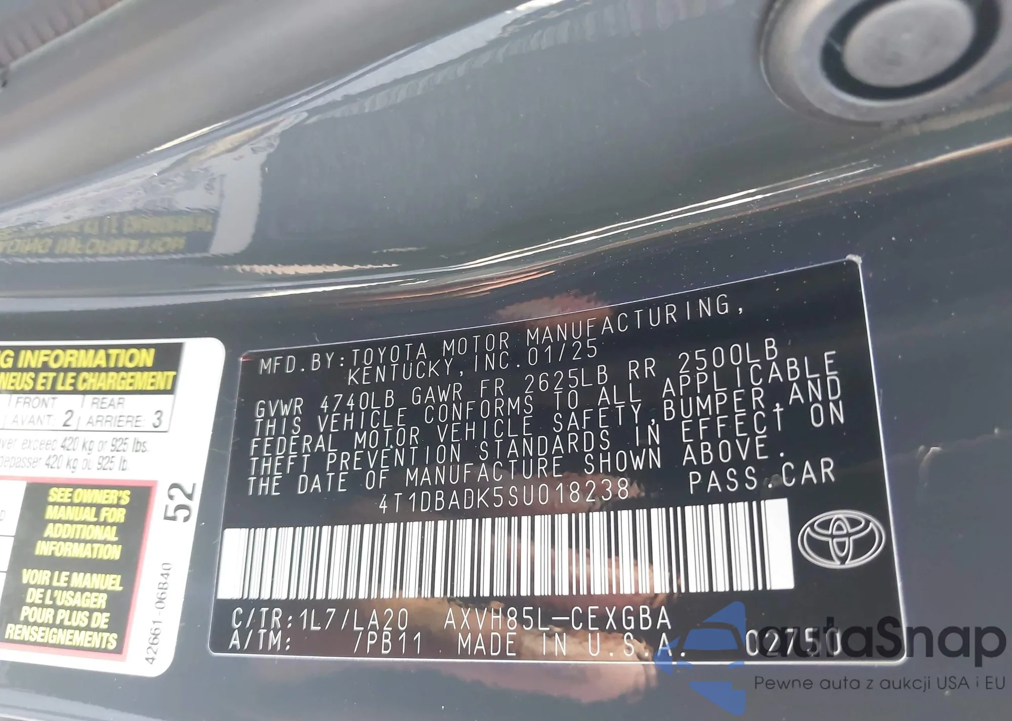 LOT: 42582801 VIN: 4T1DBADK5SU018238