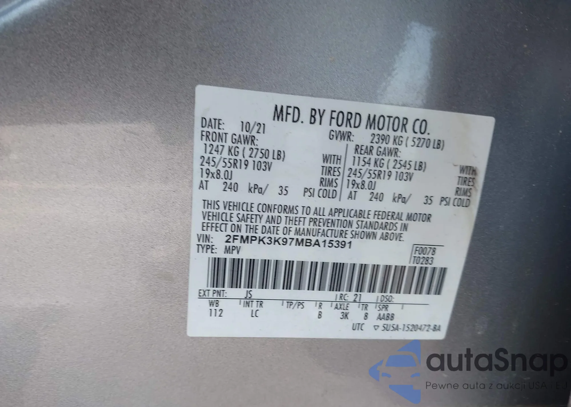 • VIN 2FMPK3K97MBA15391