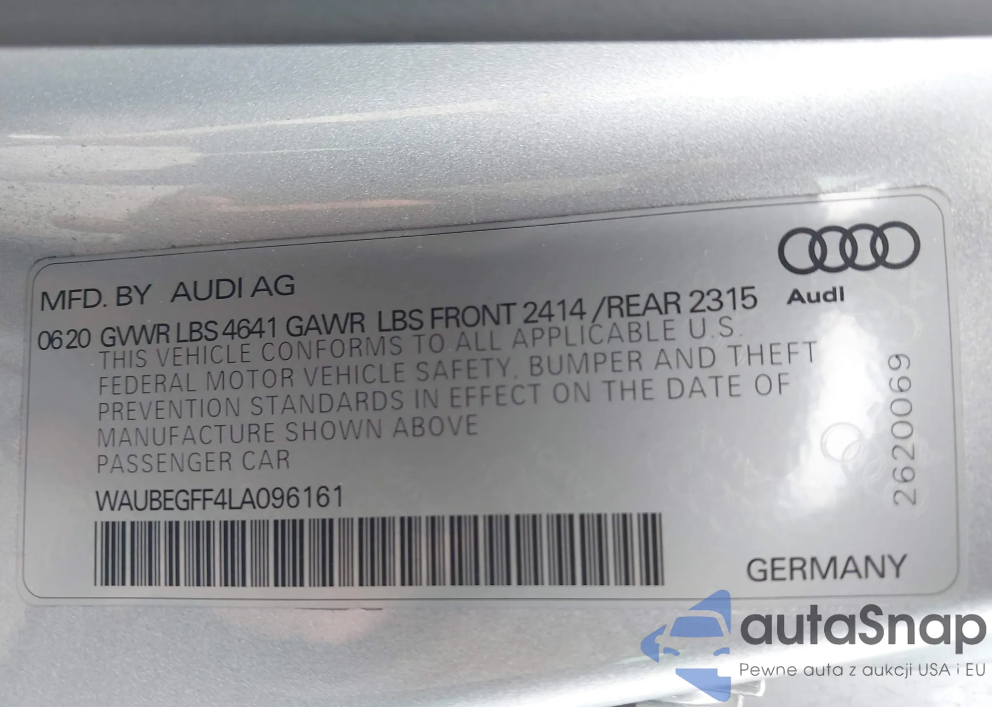 LOT: 42307837 VIN: WAUBEGFF4LA096161