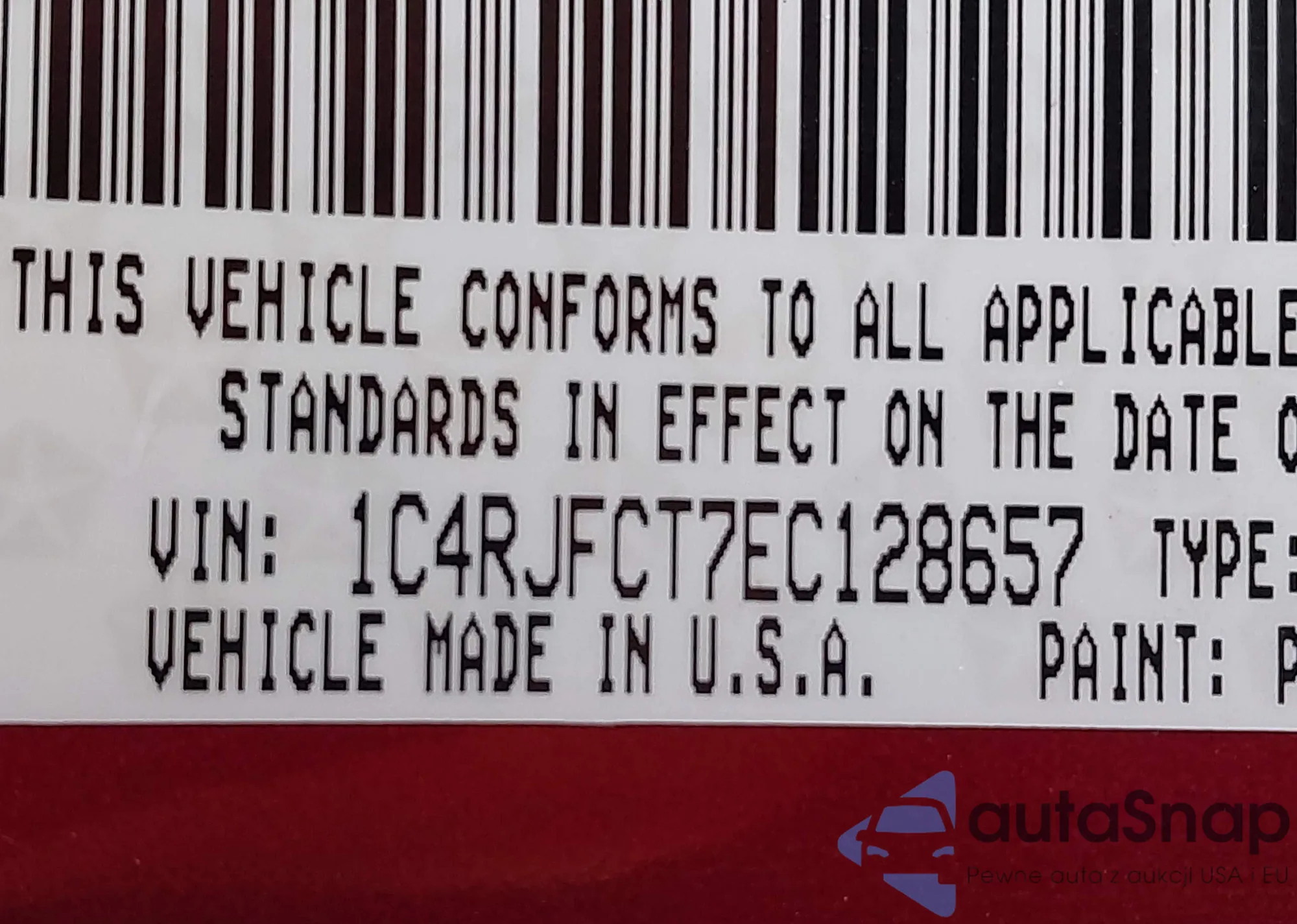 • VIN 1C4RJFCT7EC128657
