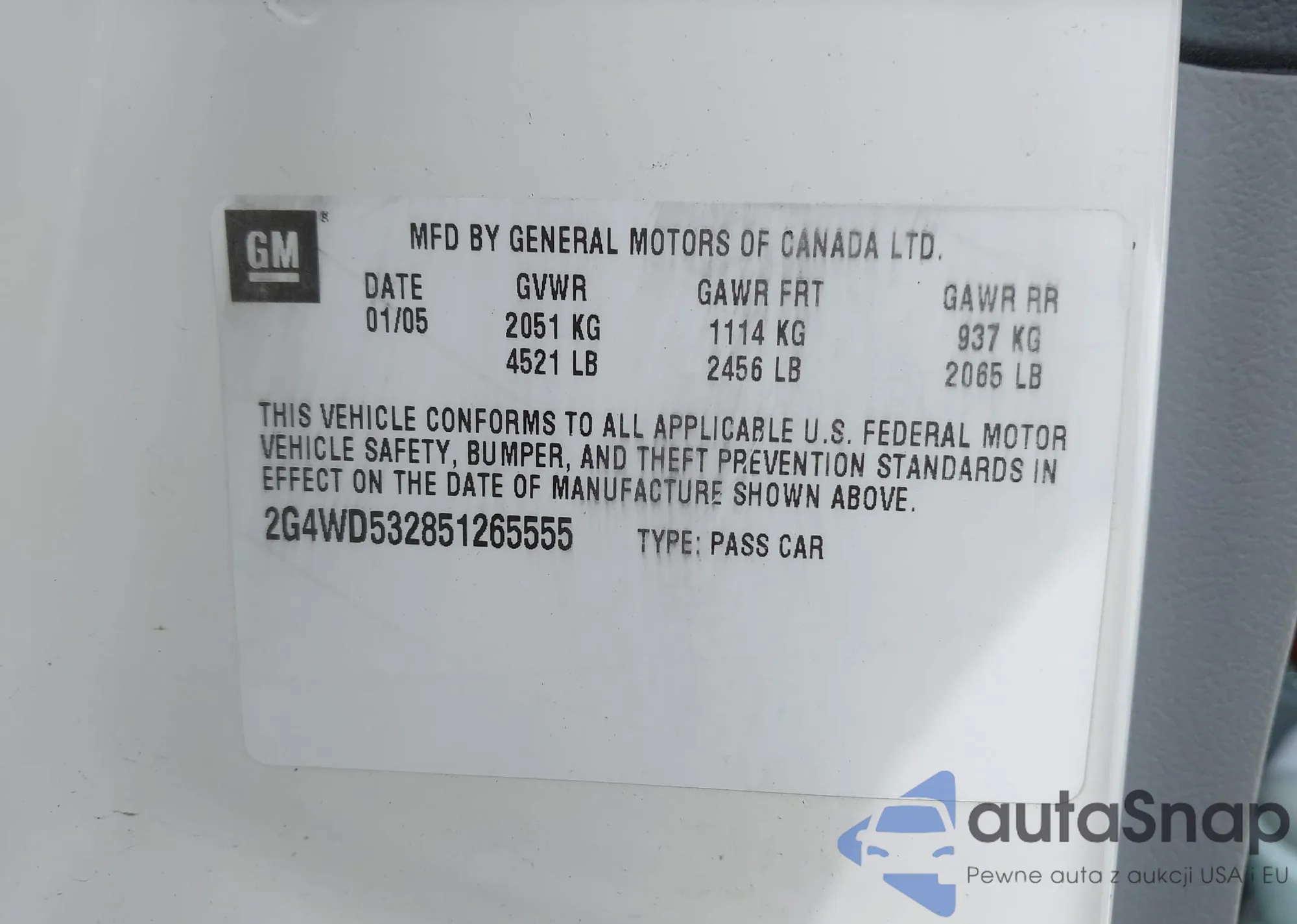 • VIN 2G4WD532851265555