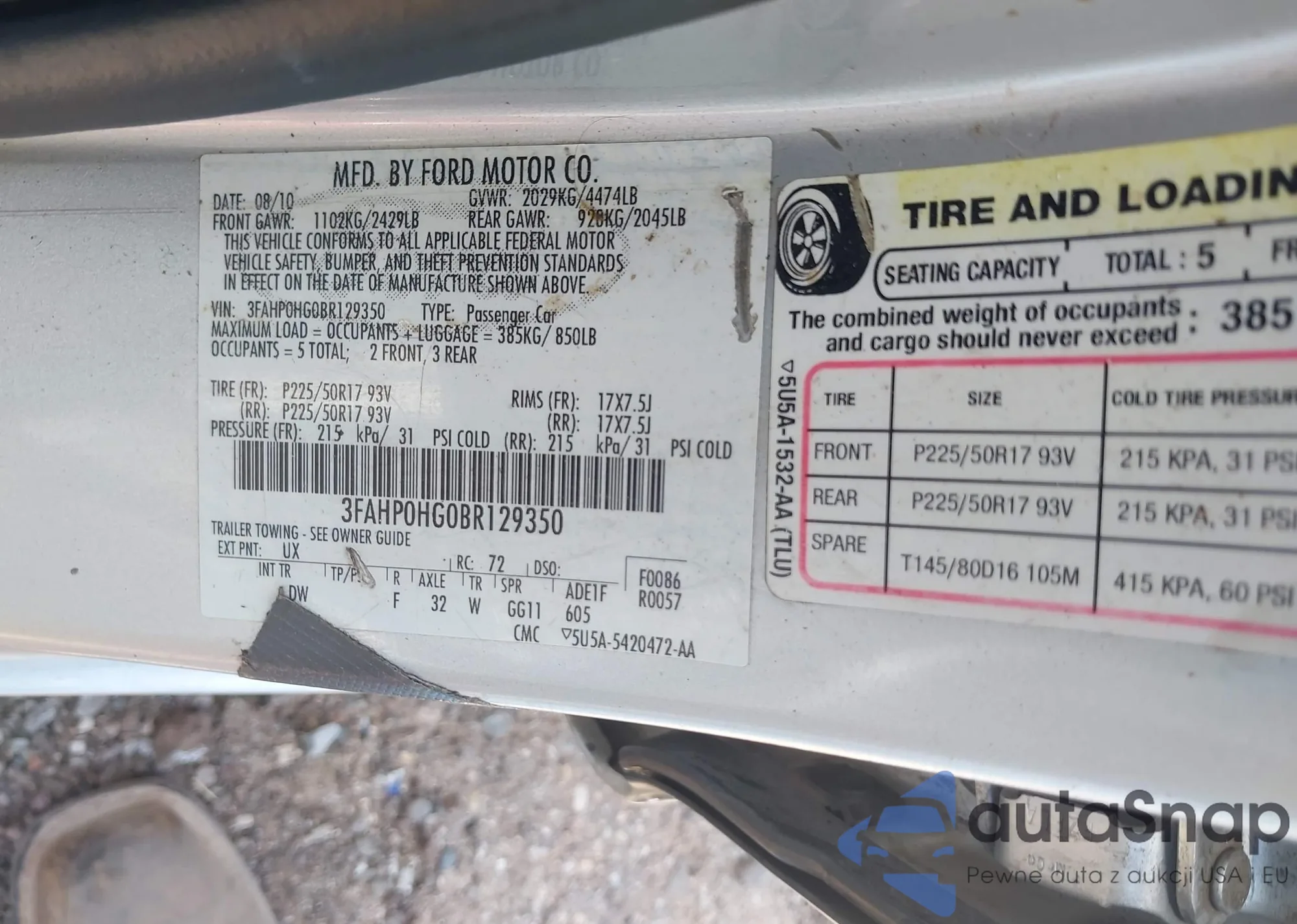 LOT: 42790297 VIN: 3FAHP0HG0BR129350