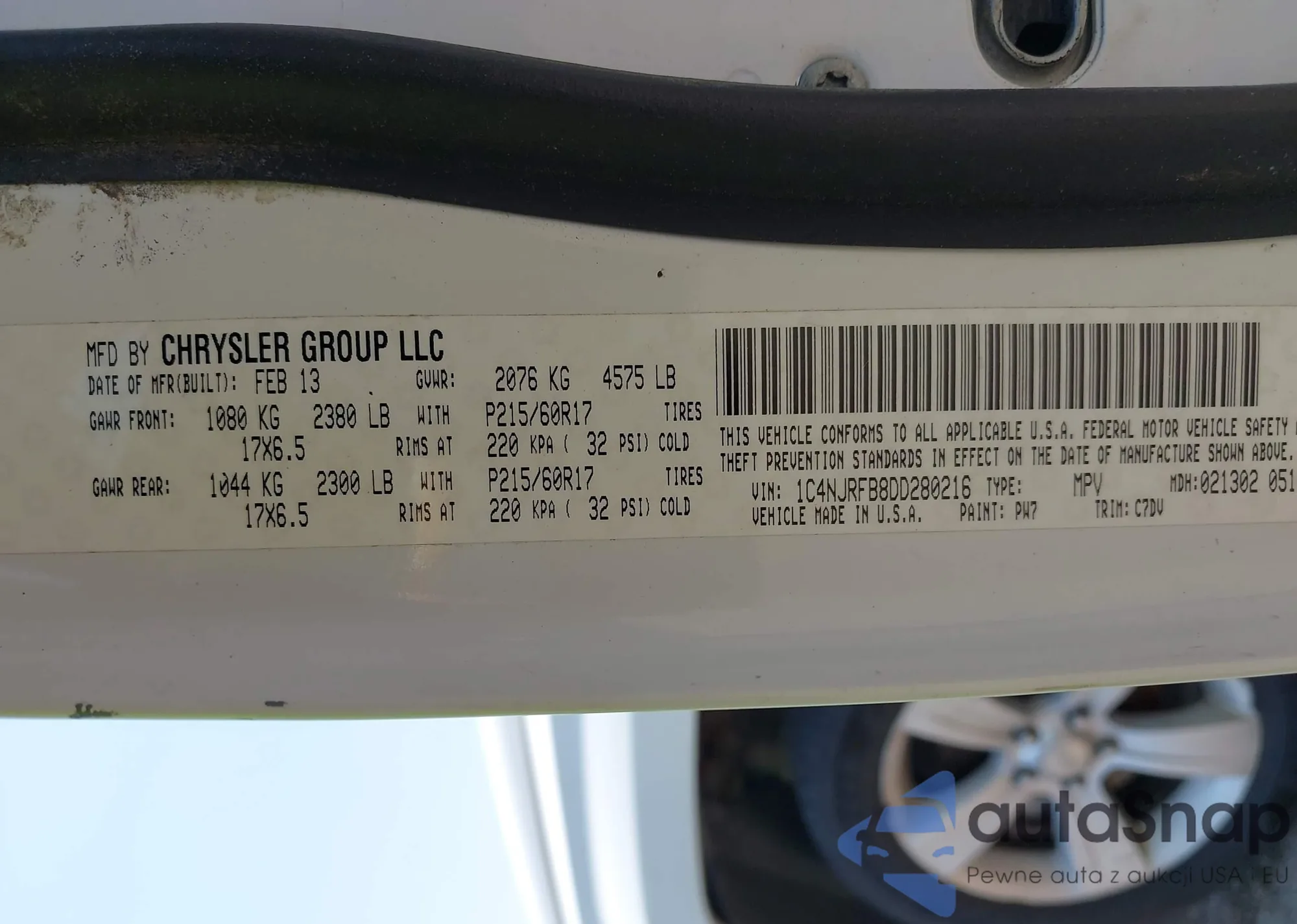 • VIN 1C4NJRFB8DD280216