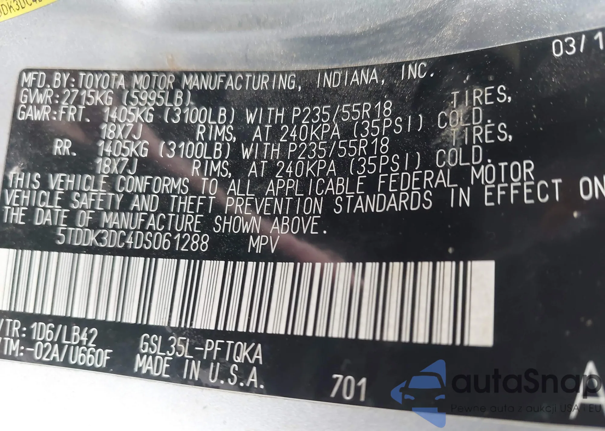 LOT: 42268362 VIN: 4T1BK1EB9DU011110