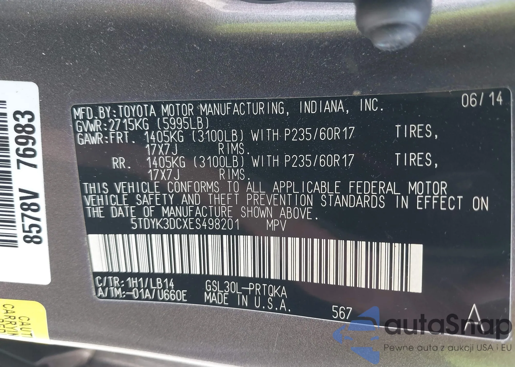 • VIN 5TDYK3DCXES498201