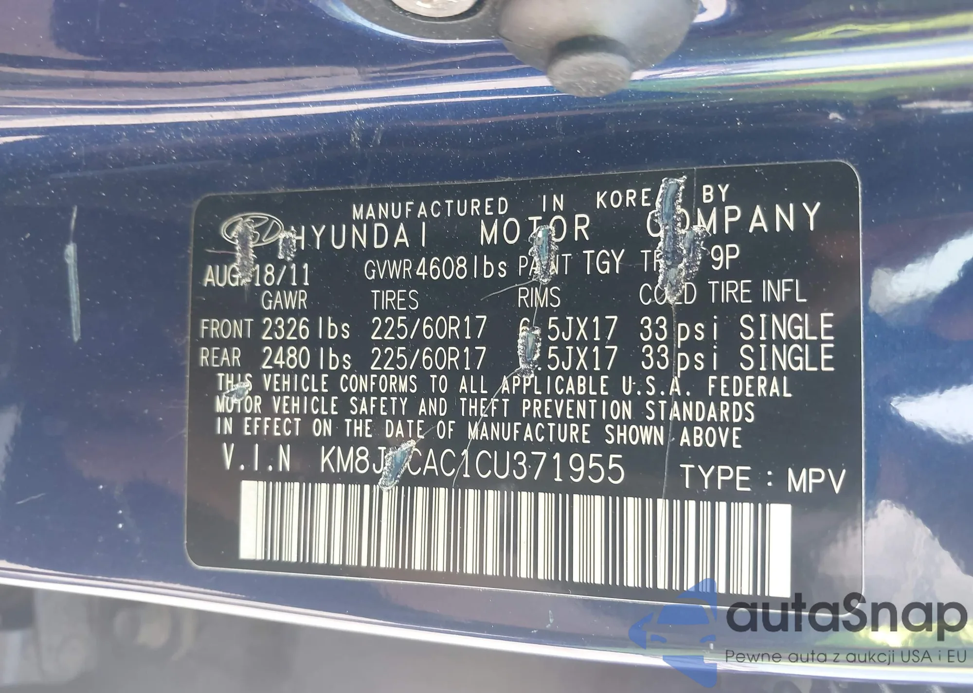 • VIN KM8JUCAC1CU371955