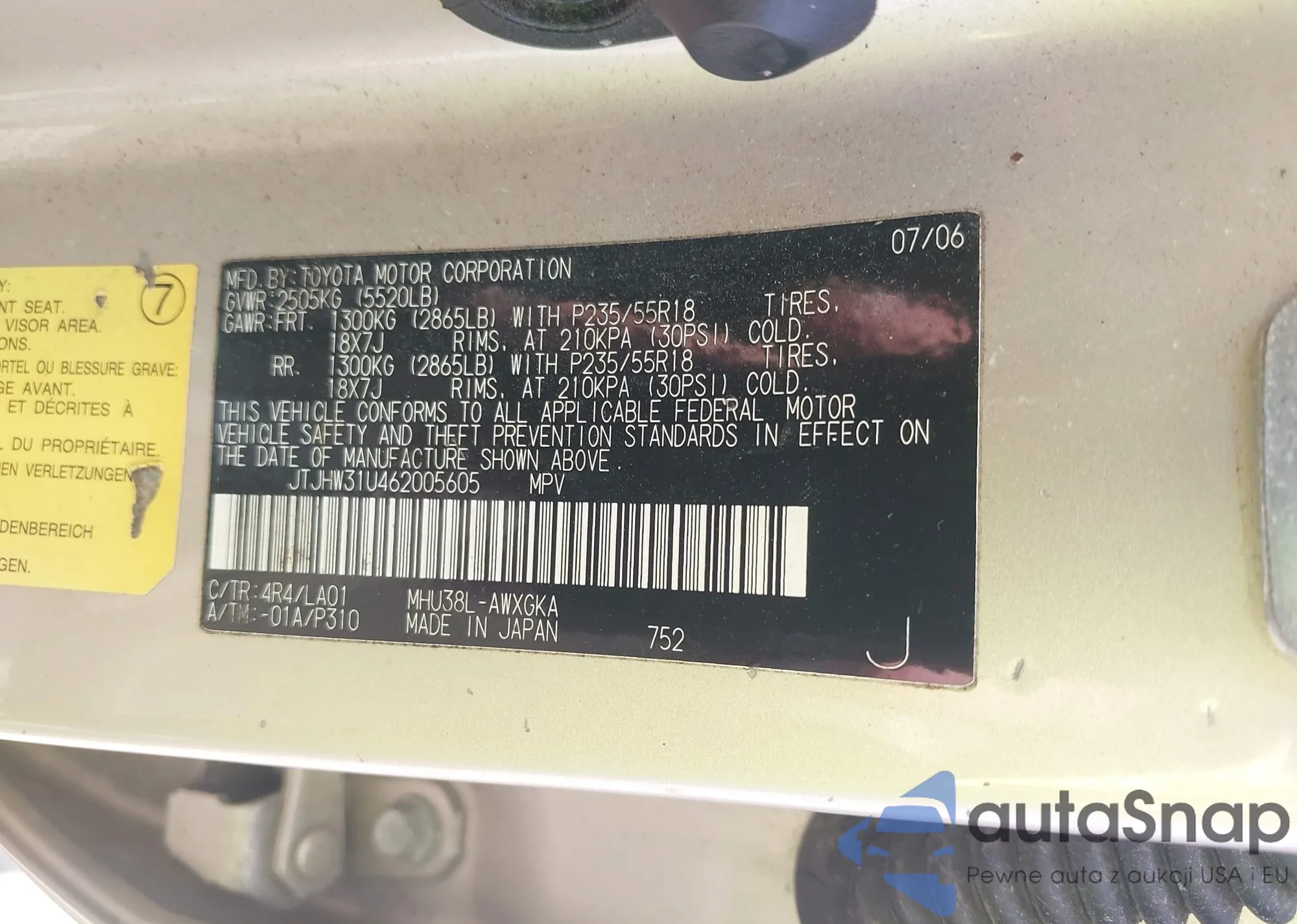 LOT: 42437489 VIN: JTMBD33V766009371