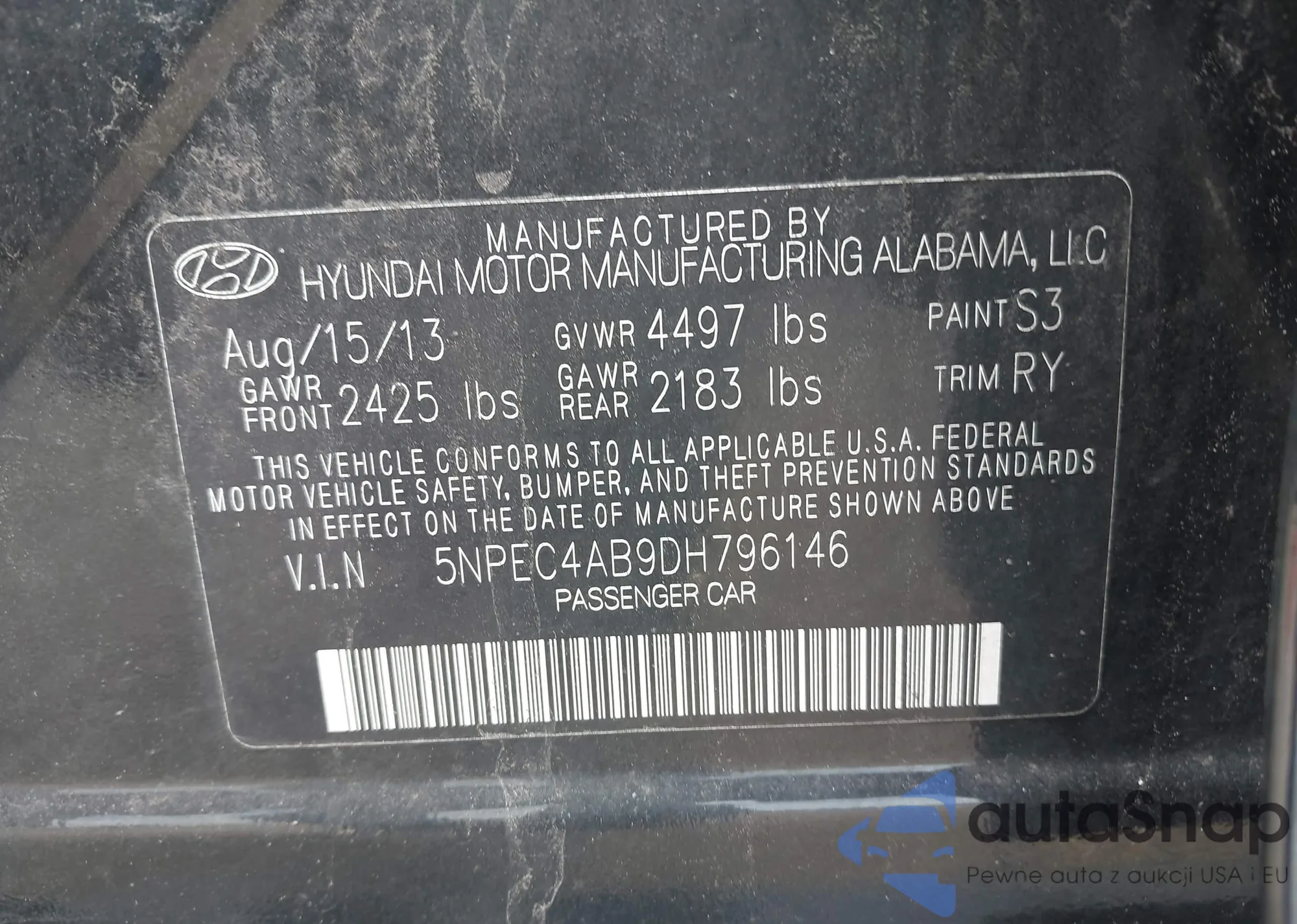 • VIN 5NPEC4AB9DH796146