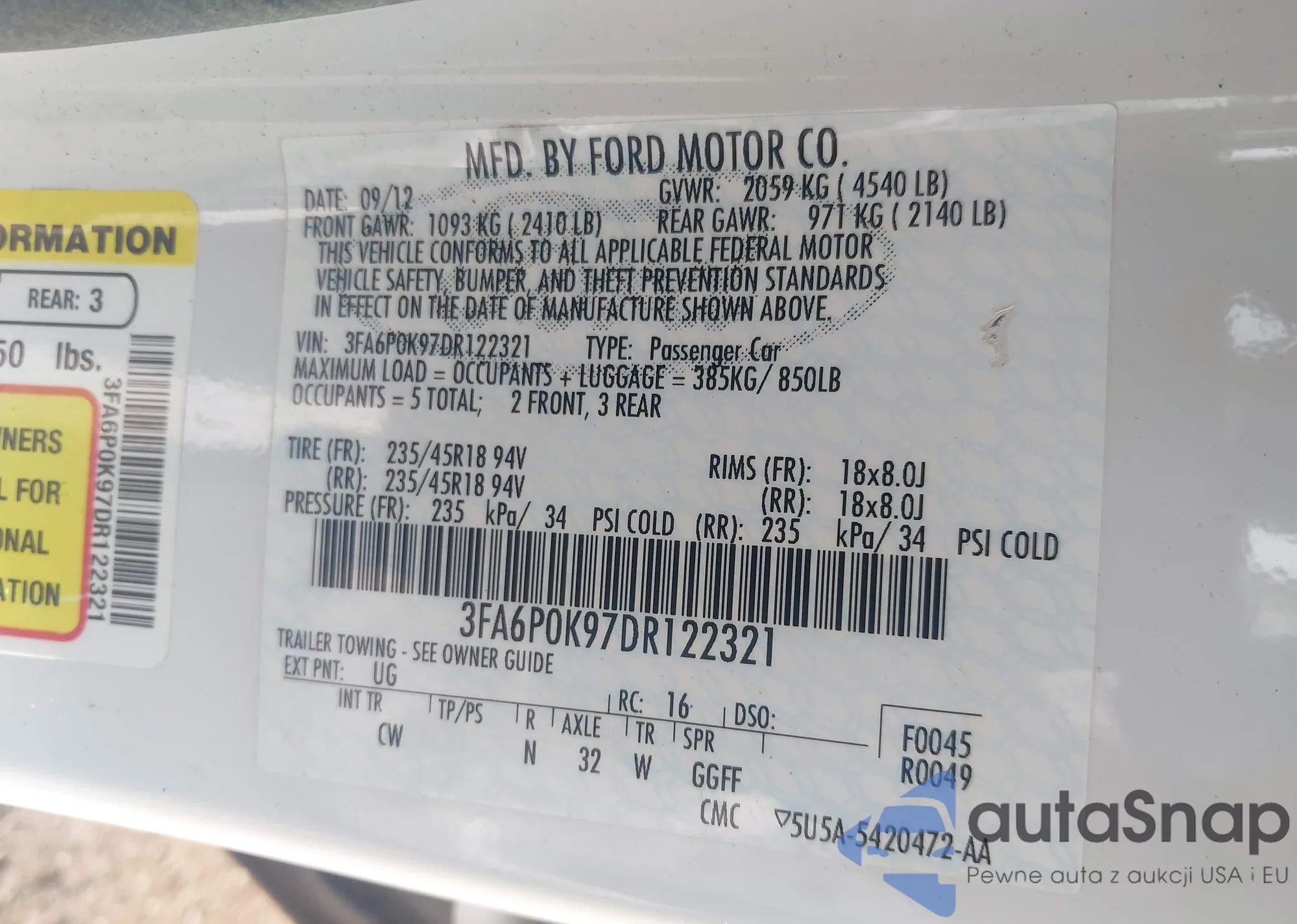 LOT: 42507854 VIN: 2FMDK53C49BA19656