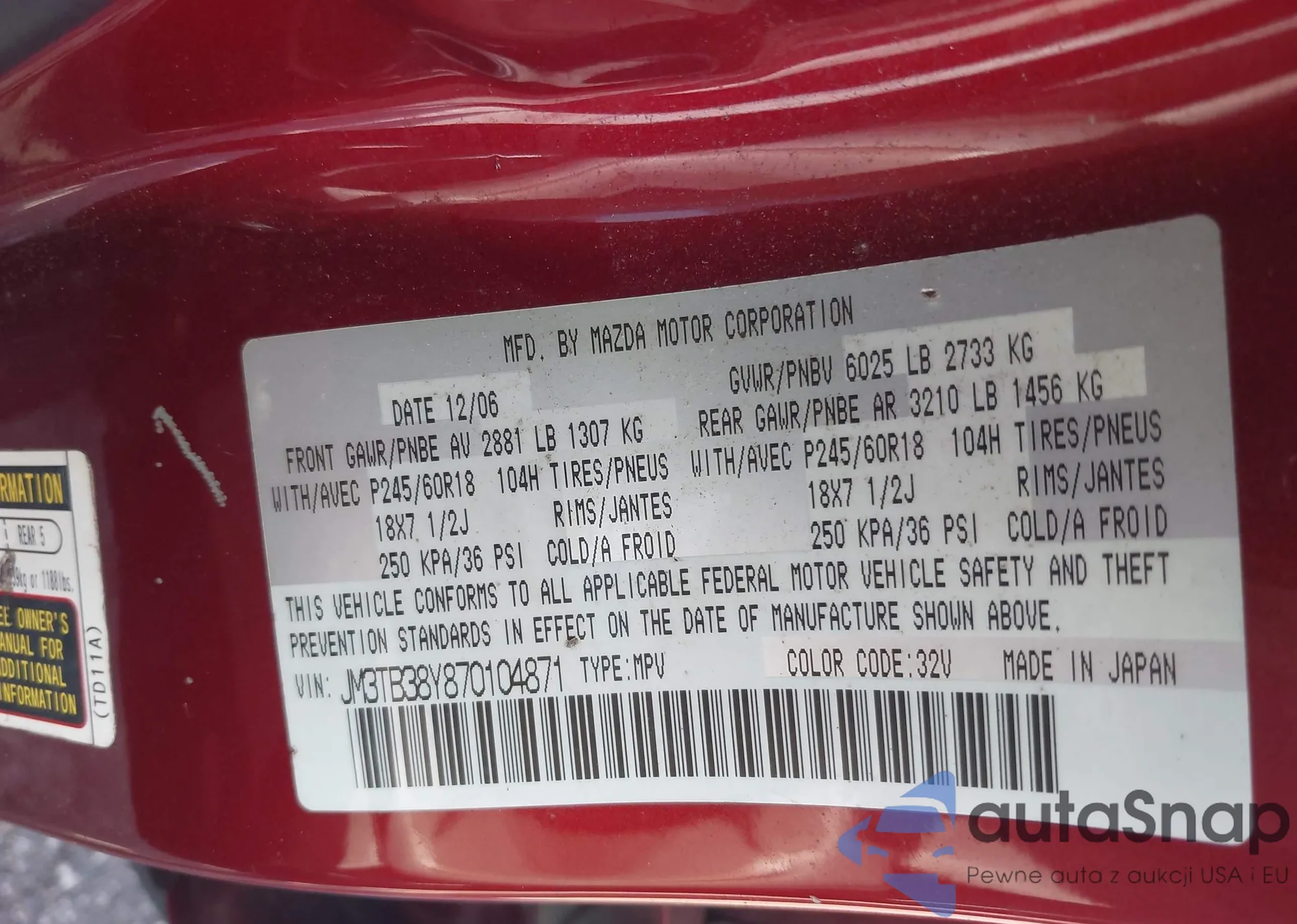 • VIN JM3TB38Y870104871