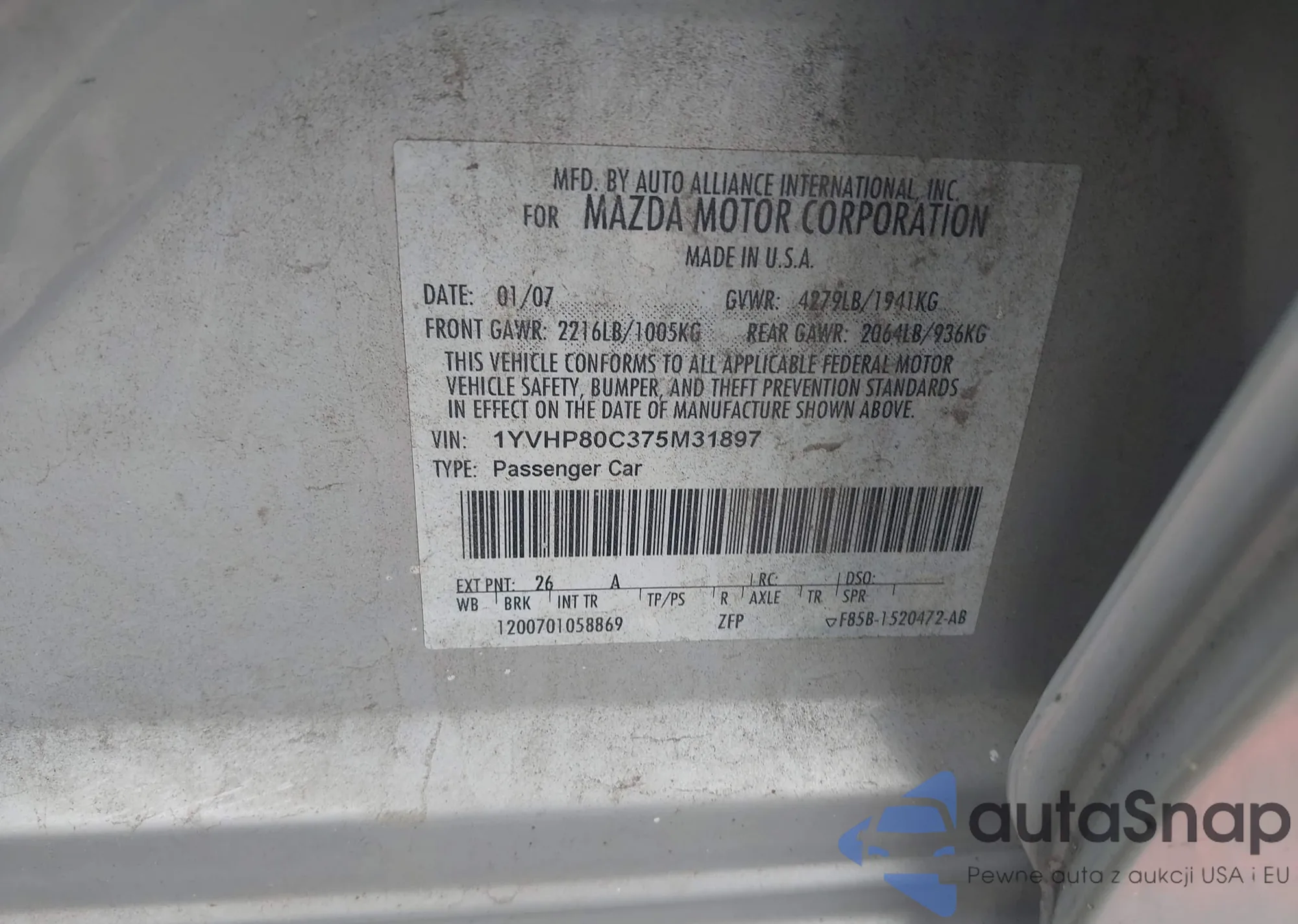 LOT: 42699755 VIN: 1YVHP80C375M31897