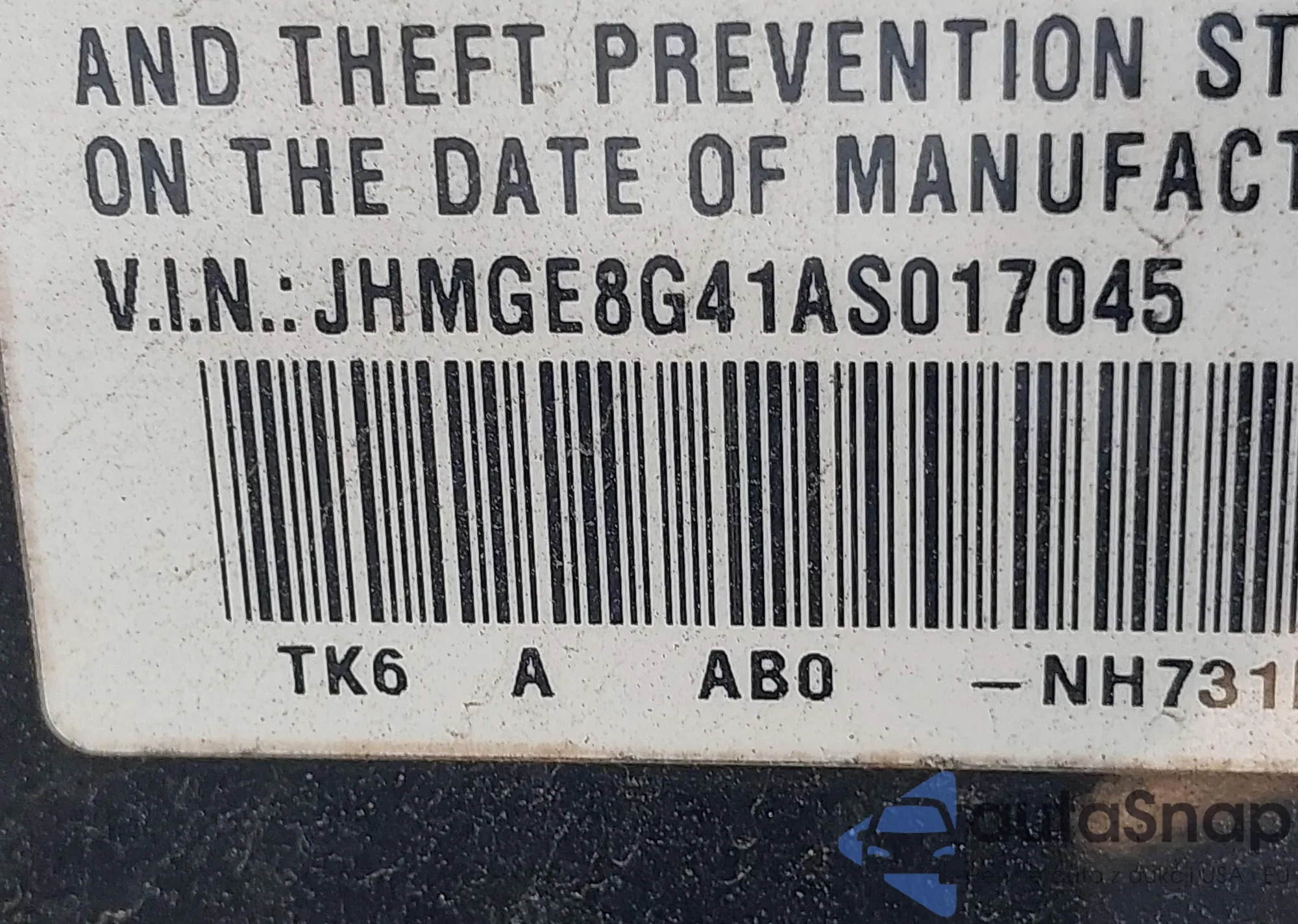 • VIN JHMGE8G41AS017045