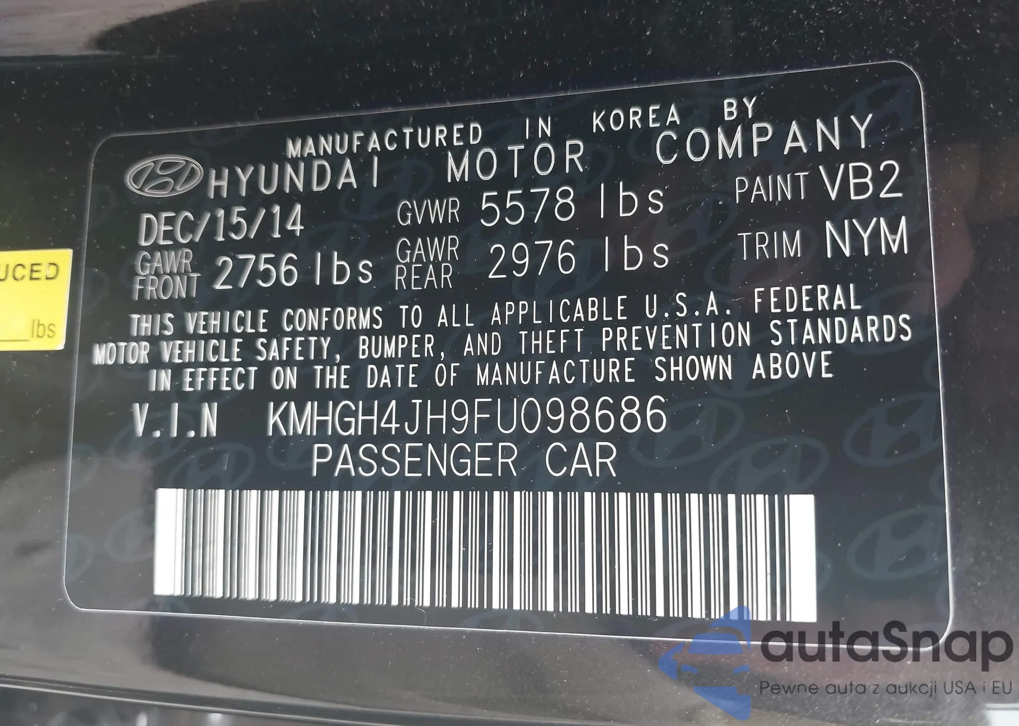 • VIN 5XYPG4A3XHG275360