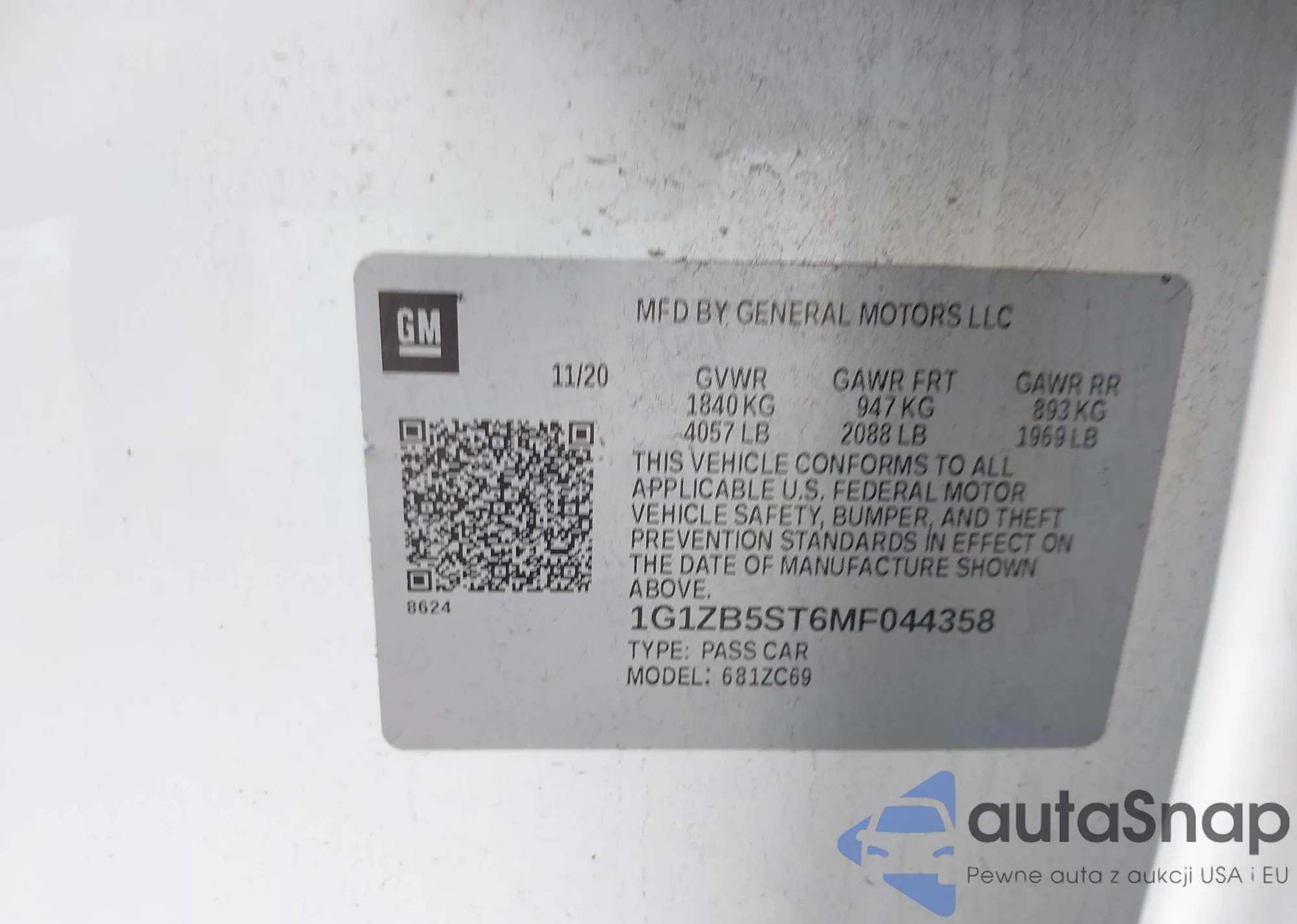 LOT: 42475009 VIN: 1G6DT5RK5M0116734