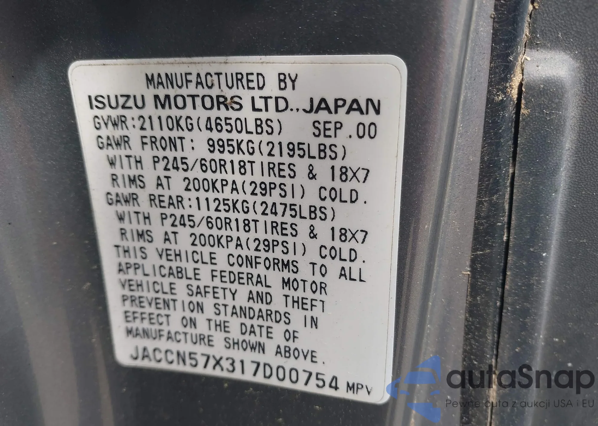 LOT: 42713117 VIN: JACCN57X317D00754