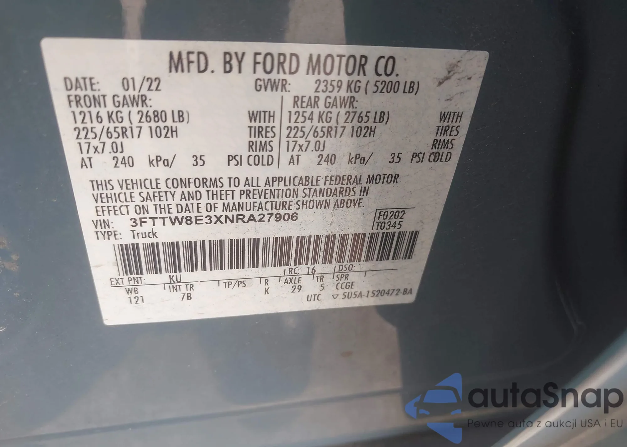 • VIN 3FTTW8E3XNRA27906