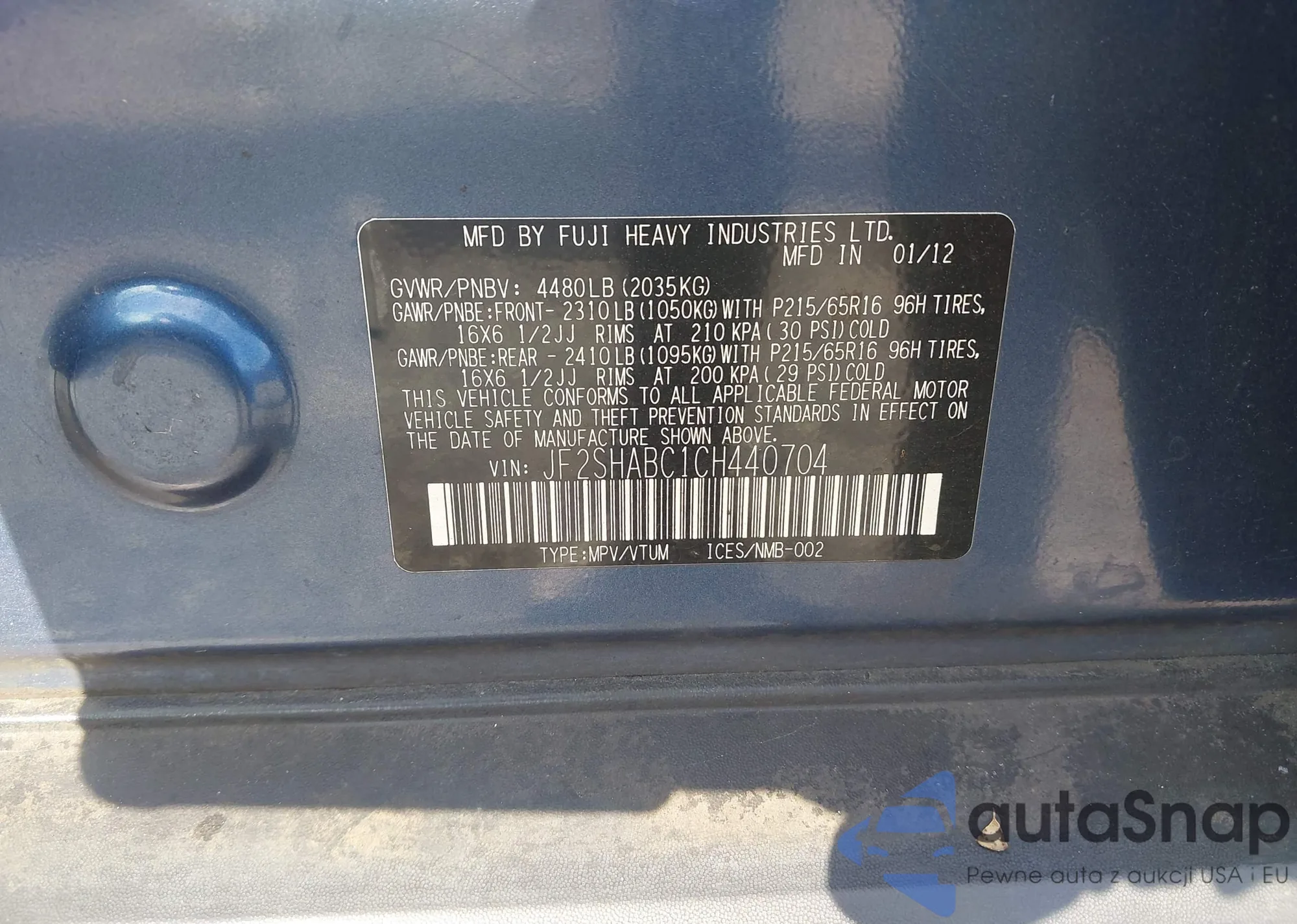 LOT: 42450731 VIN: JF2SHABC1CH440704