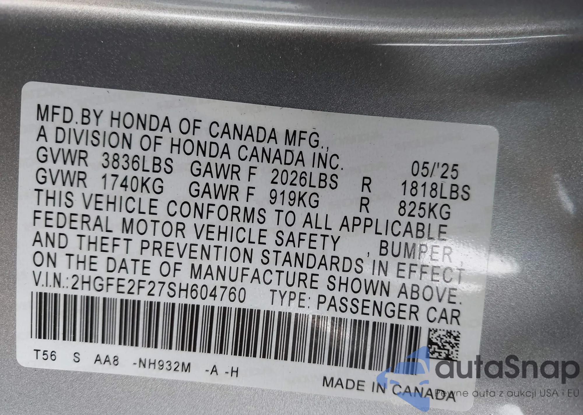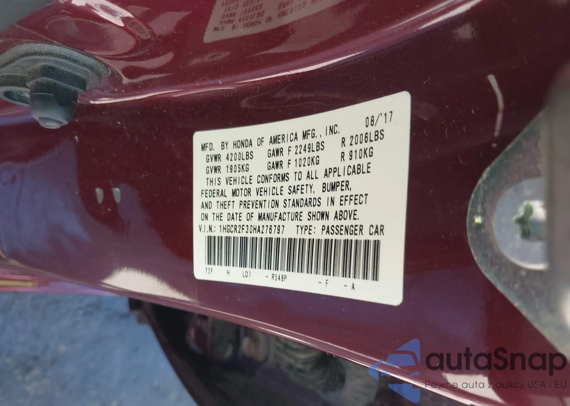 • VIN 5J6RW2H55HL035848