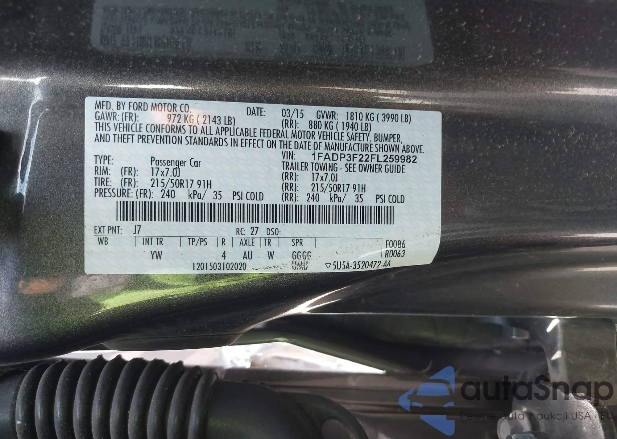 LOT: 42638145 VIN: 1FADP3F22FL259982