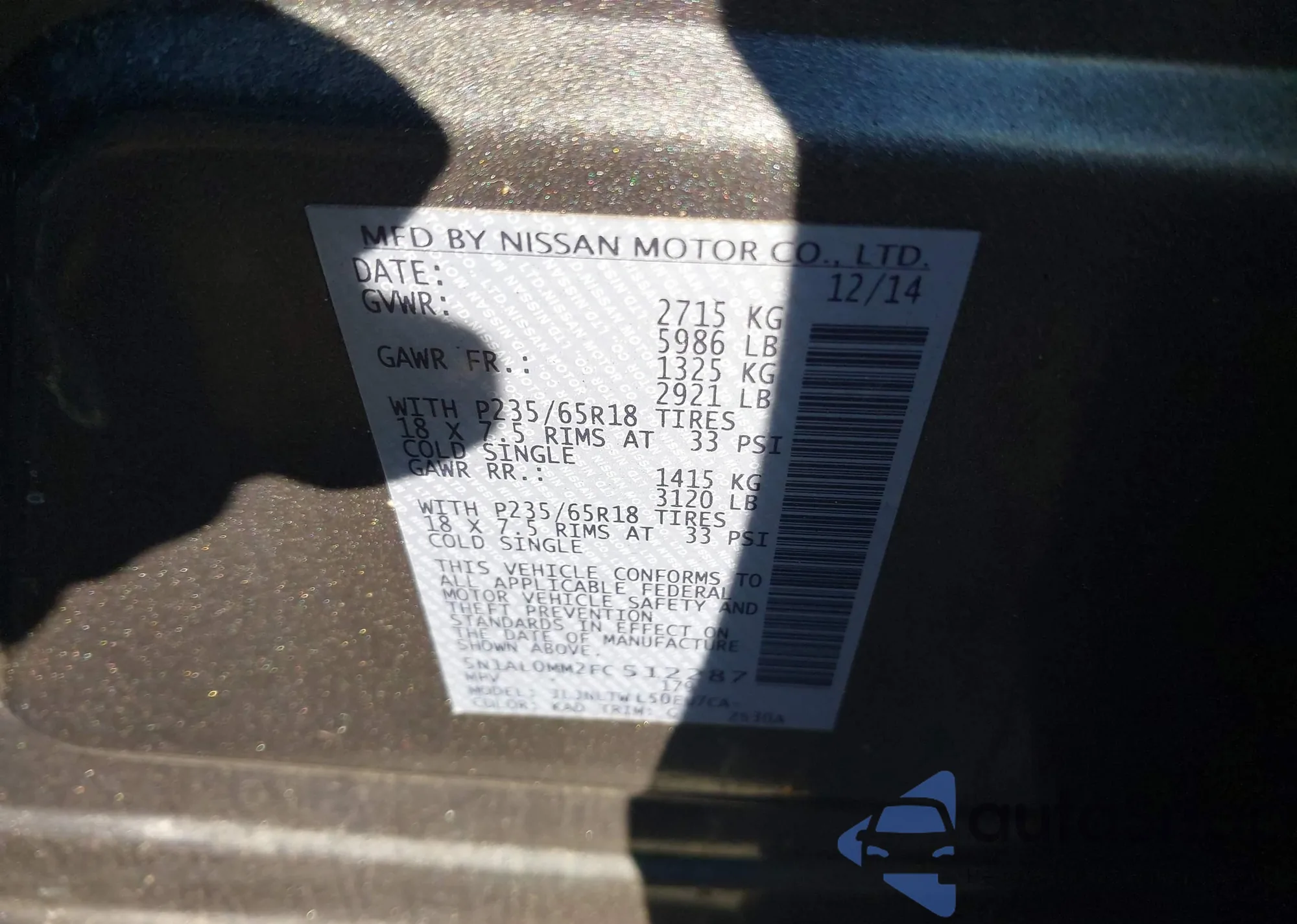 • VIN 5N1AL0MM2FC512287