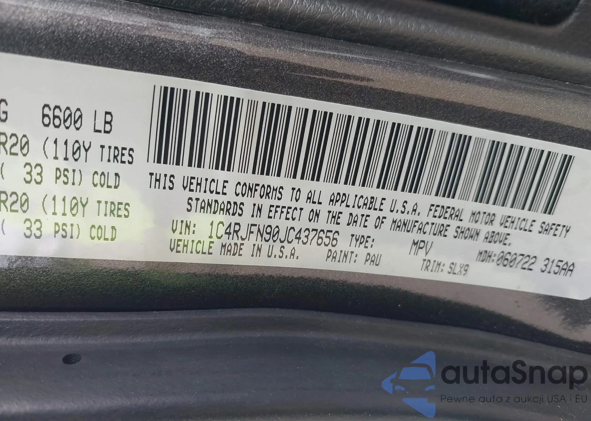 • VIN 1C4RJFN90JC437656
