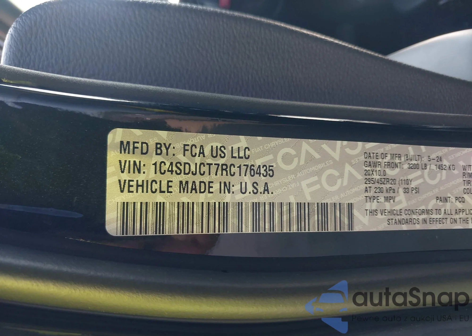 • VIN 1C4SDJCT7RC176435
