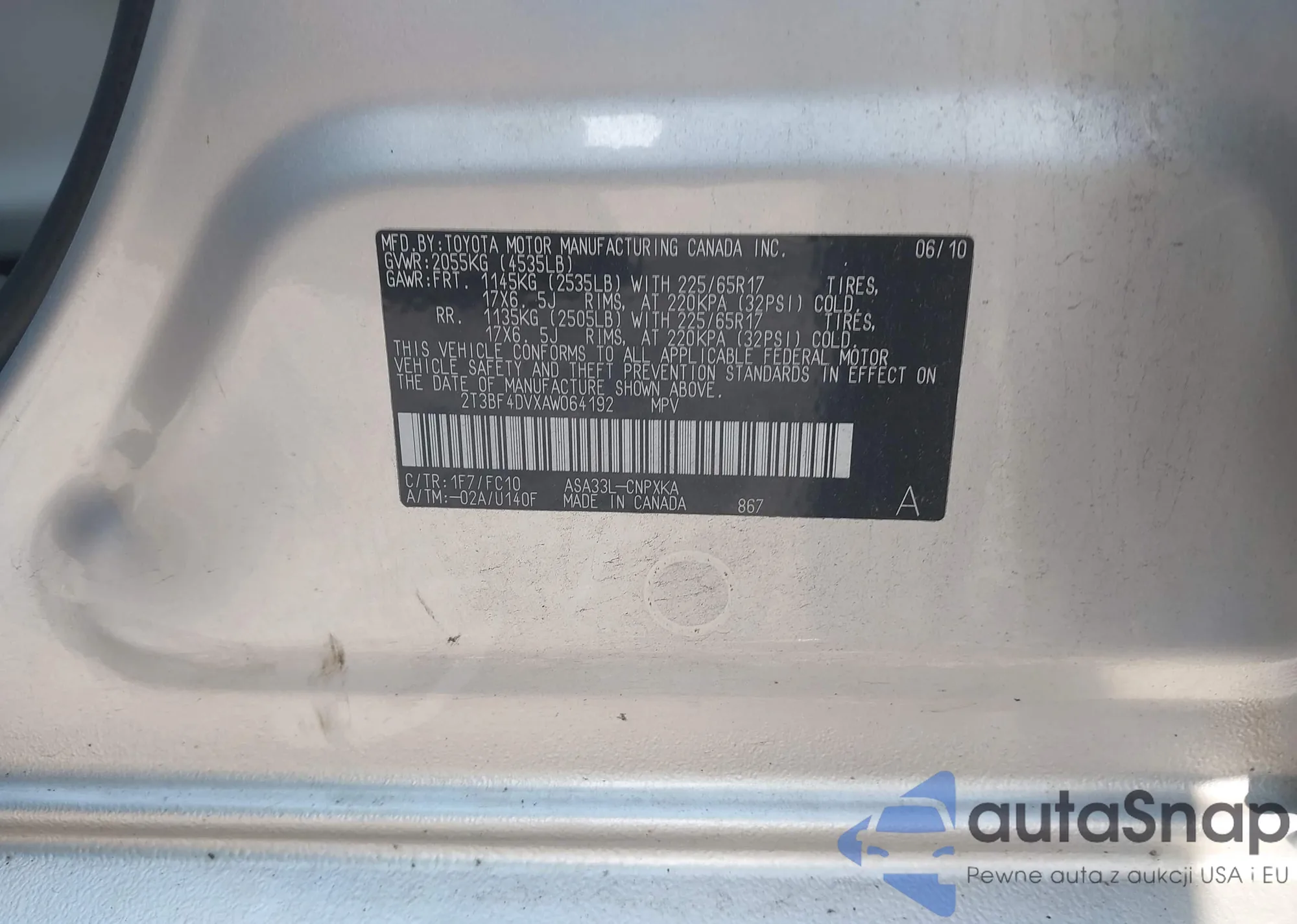 • VIN 2T3BF4DVXAW064192