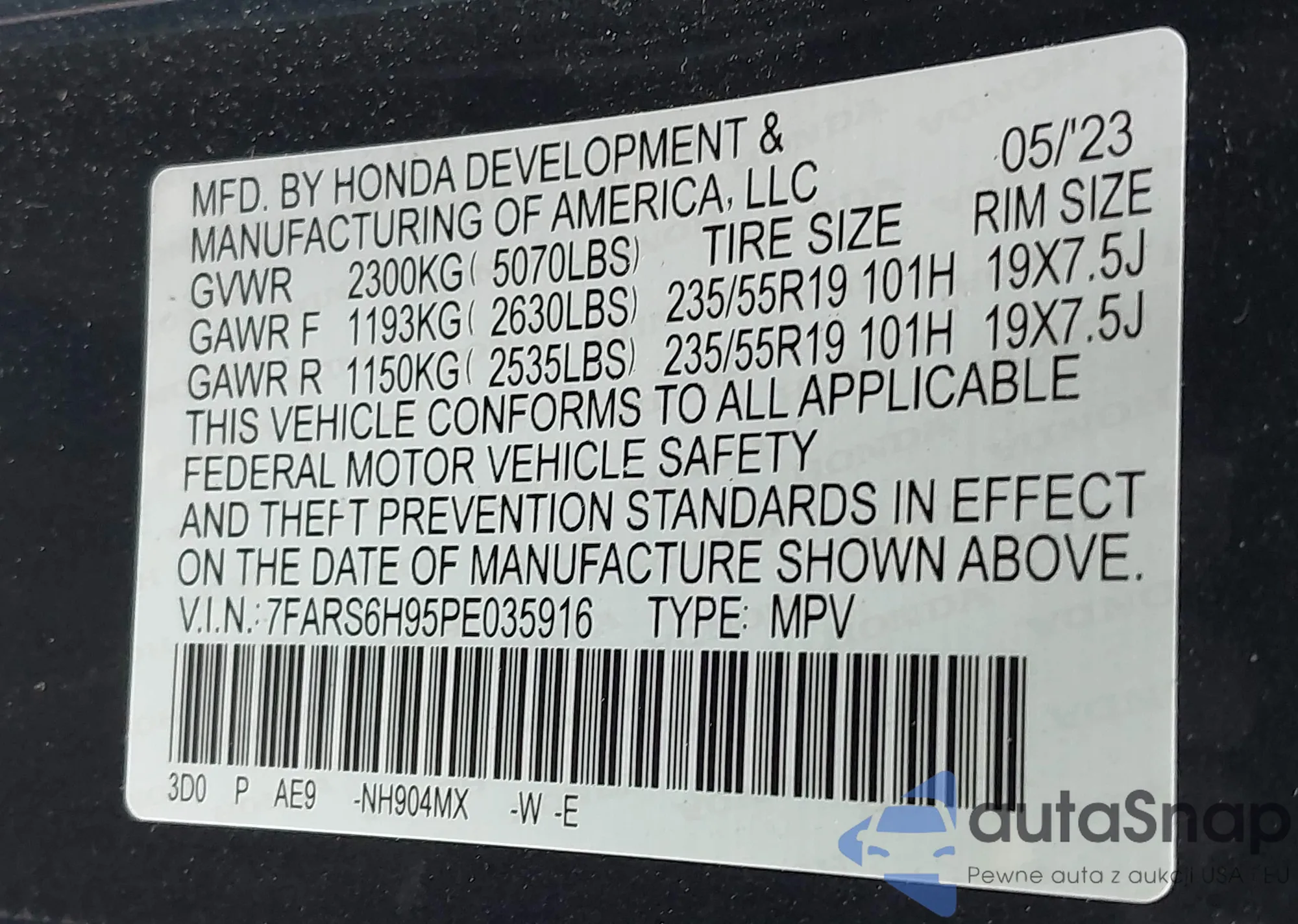 • VIN 7FARS6H95PE035916