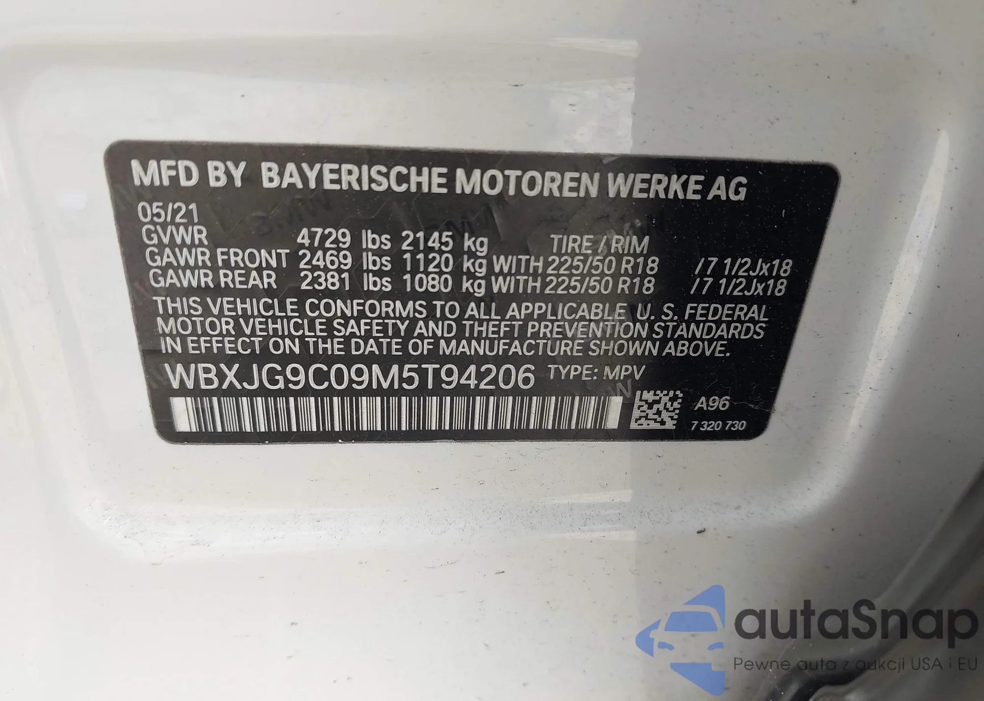 • VIN WBXJG9C09M5T94206